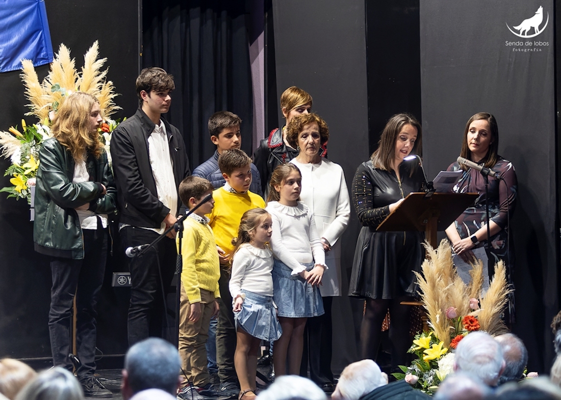 A continuación, tuvo lugar el momento más emotivo de la velada, pues se procedió a rendir homenaje a Francisco Martínez Escudero, poeta y miembro del jurado del los Juegos Florales entre los años 1984 y 2016. Para ello, su esposa, hijas y nietos subieron al escenario y recitaron varias poesías en recuerdo de este ilustre palmesano. También se les entregó una placa conmemorativa.