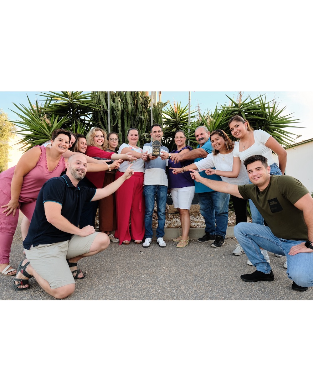 Las fotos corresponden al certamen en tierras castellanas y una en la empresa cartagenera compartiendo la alegría del premio con el resto de compañeros del equipo.