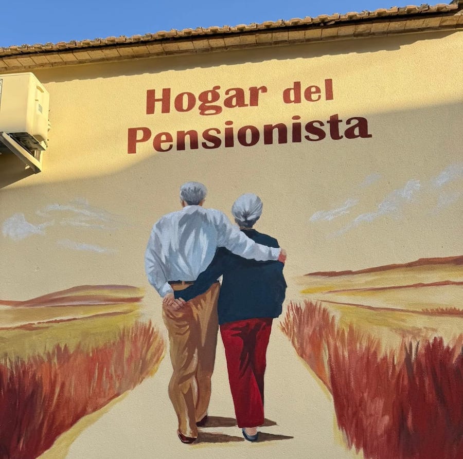 El artista Jesús Lorente ha ejecutado el encargo de la asociación de vecinos que representan el paso del tiempo, la experiencia, el amor que perdura o el compañerismo de los mayores caminando juntos, entre otros valores.