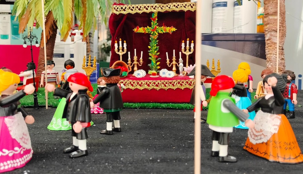 PlaymoCT, con Antonio Ferrer al frente, sigue ofreciendo representaciones en el escaparate de la farmacia de Sánchez Carrascosa de la calle del Aire, rindiendo en esta ocasión homenaje con las figuras de playmóbil al Grupo Folclórico ‘Ciudad de Cartagena’ de La Palma “en reconocimiento a la lavor que realiza en la conserevación de nuestra tradiciones”, indican.
