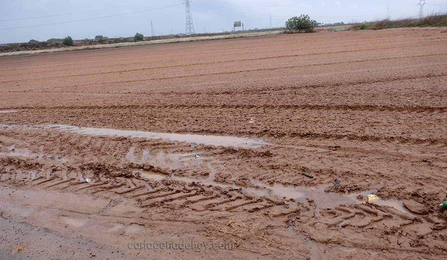 Las alertas naranjas por fuertes lluvias de la última semana han quedado, por fortuna para esta tierra, en estupendos riegos para nuestros campos y para limpiar la atmósfera del municipio. La imagen muestra un amplio bancal de Santa Ana recibiendo la constante y suave lluvia durante la jornada de ayer.