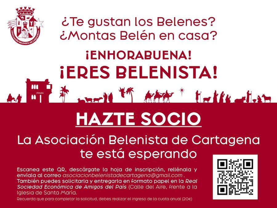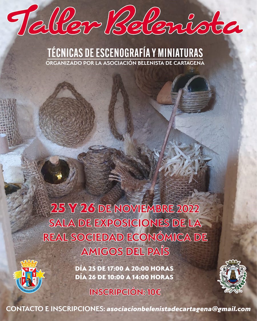 "Es una oportunidad muy buena para aprender a hacer escenografía y miniaturas para tu belén particular", indica Antonio Ferrer, presidente de la Asociación Belenista de Cartagena. Los interesados deben dirigirse al correo electrónico: Esta dirección de correo electrónico está siendo protegida contra los robots de spam. Necesita tener JavaScript habilitado para poder verlo.
