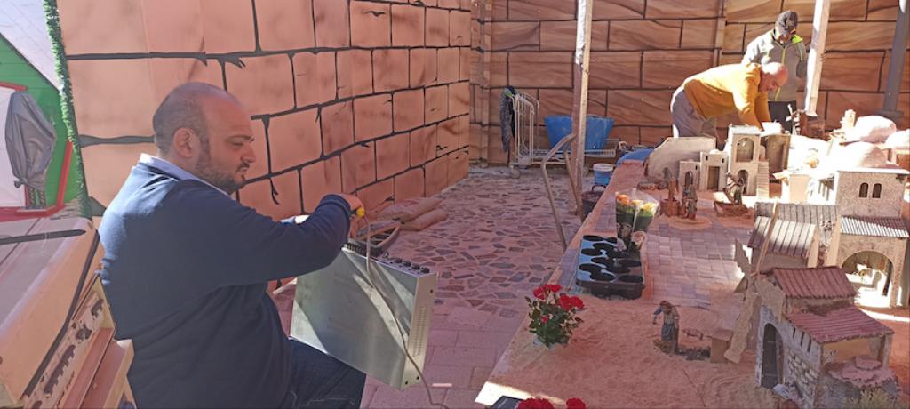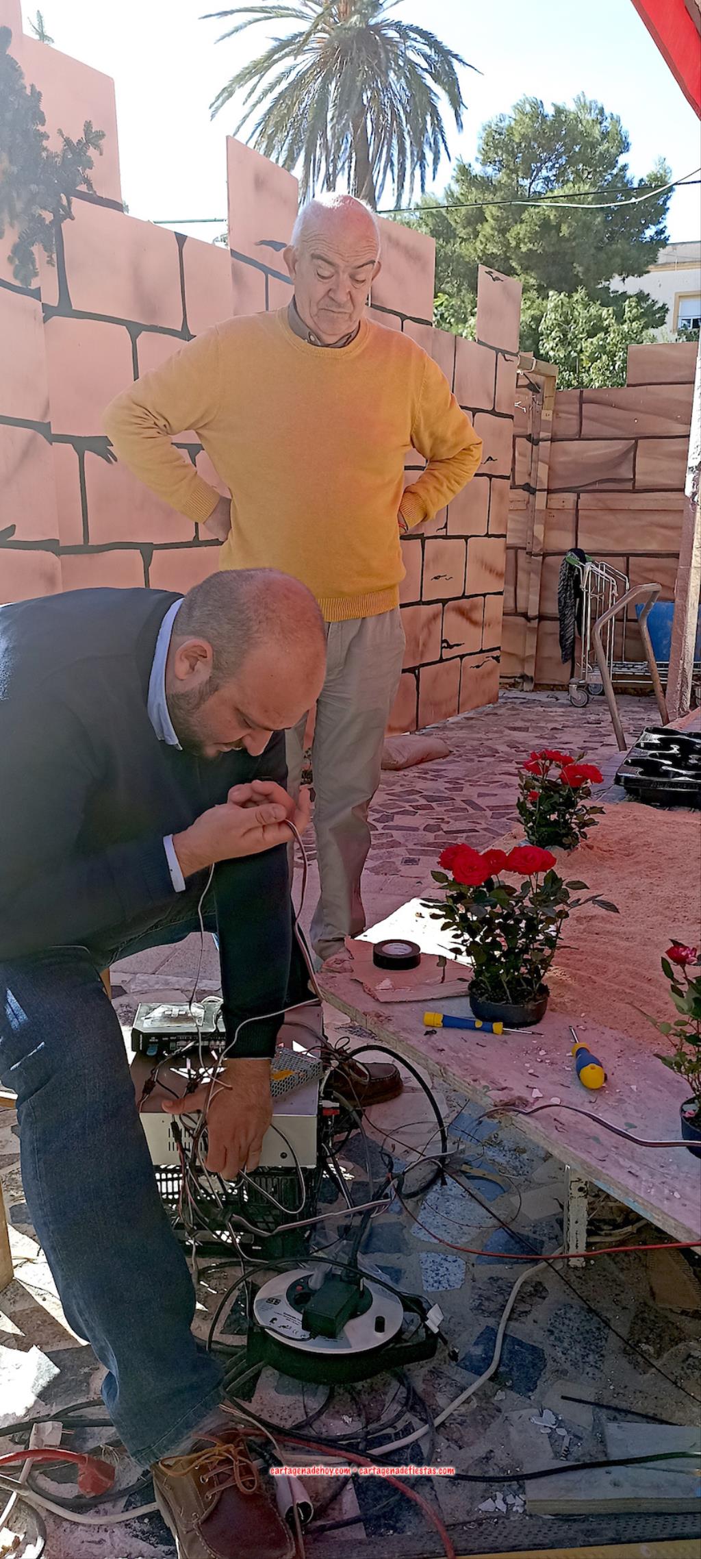 La gran novedad está en el sistema de iluminación contratado en Montilla (Córdoba), a donde viajaron el presidente junto a su vicepresidente, Manuel Torres García, y que se ha estado instalando estos días. Hace años se instaló ya un sistema que ofrecía cambios de luz sobre el Belén para reflejar la evolución del día a la noche, pero era muy complicado y costoso, durando sólo un ejercicio. Ahora, con los avances tecnológicos, se ha podido recuperar muy mejorado y ofrece ya no sólo la evolución lumínica, sino también sonidos propios de cada momento, como los grillos por la noche, el canto del gallo al amanecer, el bullicio de un mercado durante la mañana… En este vídeo a velocidad rápida se puede ver el resultado: PINCHAR AQUÍ