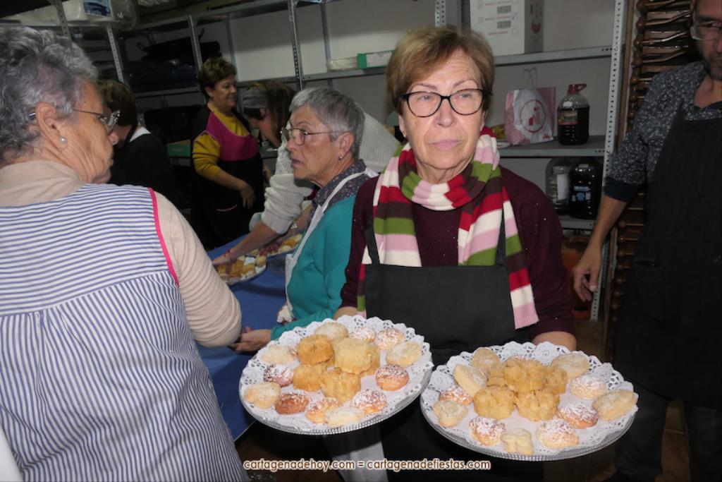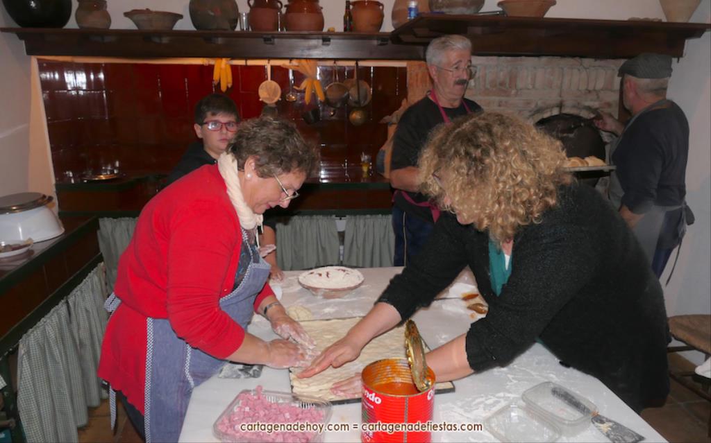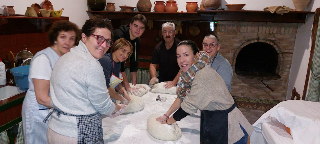 Todavía es madrugada en la Casa del Folclore, pero en su interior ya hay actividad, en concreto, la del equipo del grupo folklórico encargado de amasar la harina para el proceso de elaboración de unos estupendos panes que cuatro horas más tarde comienzan a salir del horno.