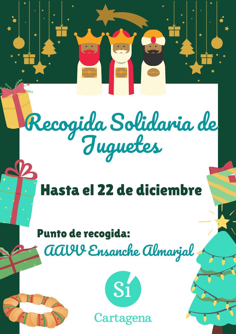 Sí Cartagena ha organizado una campaña de recogida de juguetes que se va a llevar a cabo desde el 9 al 22 de diciembre, con el objetivo de sumarse a la campaña “Juguetea” puesta en marcha desde la Concejalía de Servicios Sociales del Ayuntamiento de Cartagena.