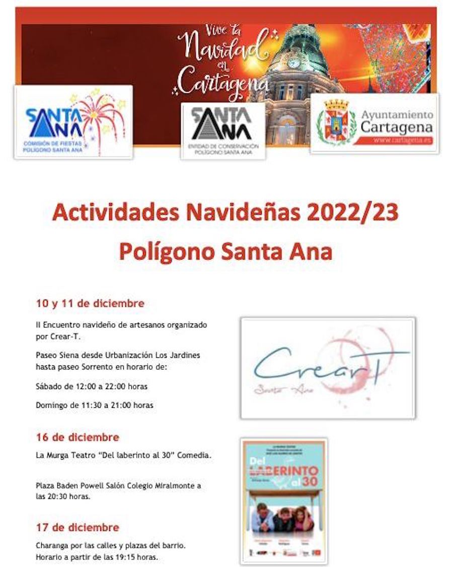 La segunda edición del encuentro organizado por Crear-T se desarrollará hoy y mañana en el paseo Sorrento, dentro de unas propuestas santianeras para vecinos y visitantes que se extenderán hasta el 2 de enero y que incluirán también teatro, pasacalles de charangas y gaiteros, tren turístico, bailes, el belén de Asido, migas navideñas, tardeo, actuaciones musicales, talleres, fiesta de Nochevieja, etc. Organizan la comisión de fiestas de la barriada, la Entidad de Conservación y el Ayuntamiento de Cartagena, con la colaboración de establecimientos locales, además de Crear-T y del colegio Miralmonte.