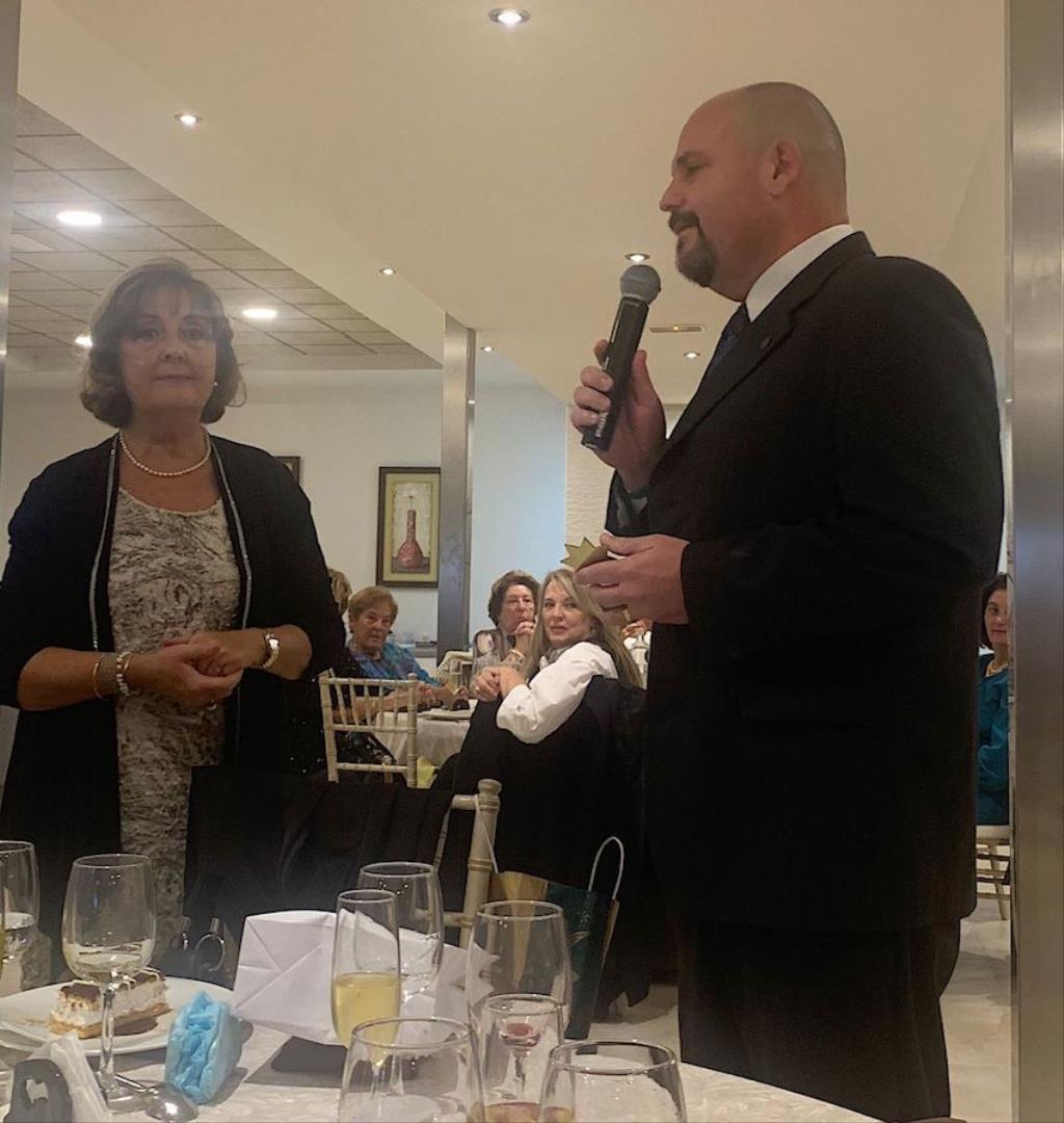 María José Puerto, como presidenta, fue la encargada de dar la bienvenida a los asistentes, para después, en nombre de la asociación, imponer la insignia de UMAY al jefe de la unidad administrativa del Vicerrectorado de Extensión Educativa, Cultura y Deportes, Miguel Díaz Delgado, próximo a su jubilación laboral, en atención e interés demostrado hacia el colectivo estudiantil.