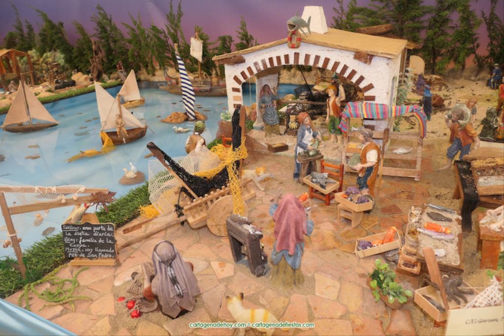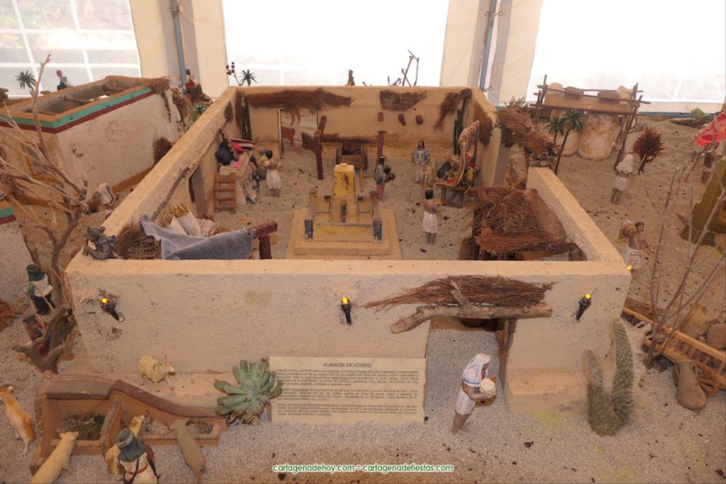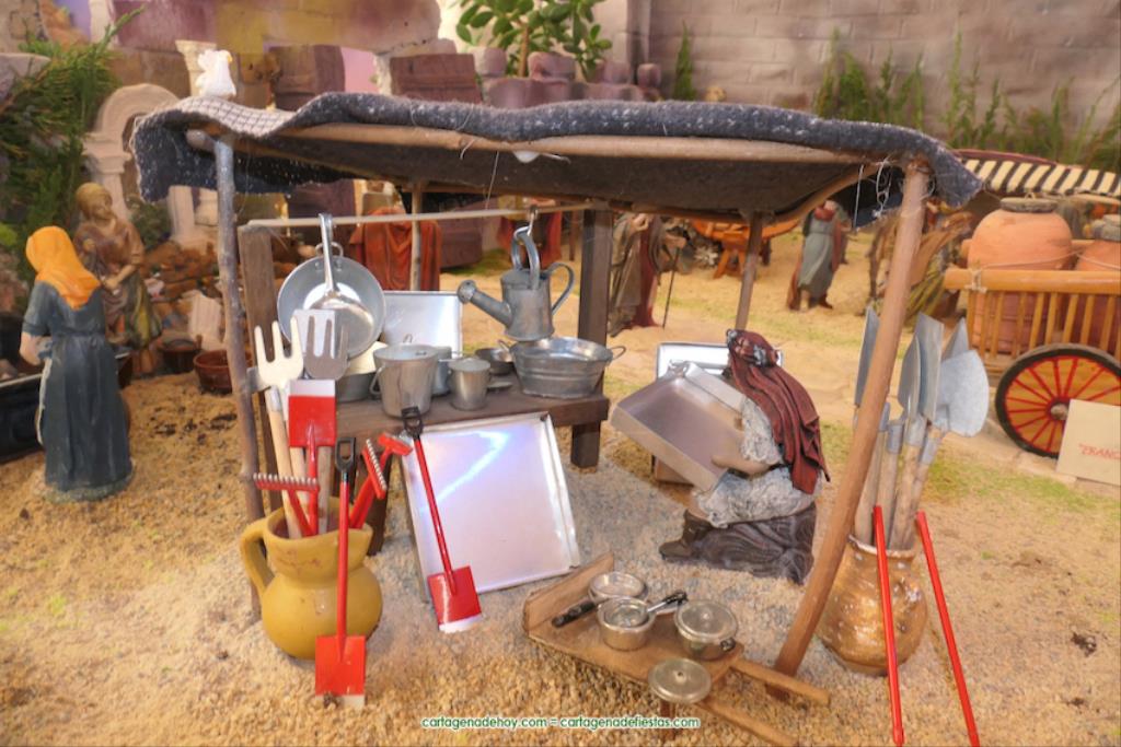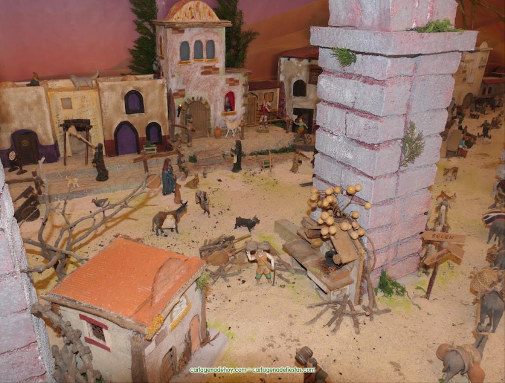 Se suman las aportaciones de una maqueta de un poblado a cargo de José Luis Navarro, vegetación y enseres varios de Mariam y Marcelo, tres legionarios y una patricia con el vestuario de Legion de Sagunto donato por este grupo de las Fiestas de Carthagineses y Romanos, de donde también llega un conjunto de casas de Francisco Gracia, de la tropa de Navegantes de Bomílcar. Y, como hemos apuntado antes, la Batería de Cenizas como lugar de la llegada del niño Jesús. Por supuesto, siguen los elementos identificativos de años anteriores, como los nombres de establecimientos y calles de La Aparecida o bienes de nuestros campos como los molinos de ocho velas.
