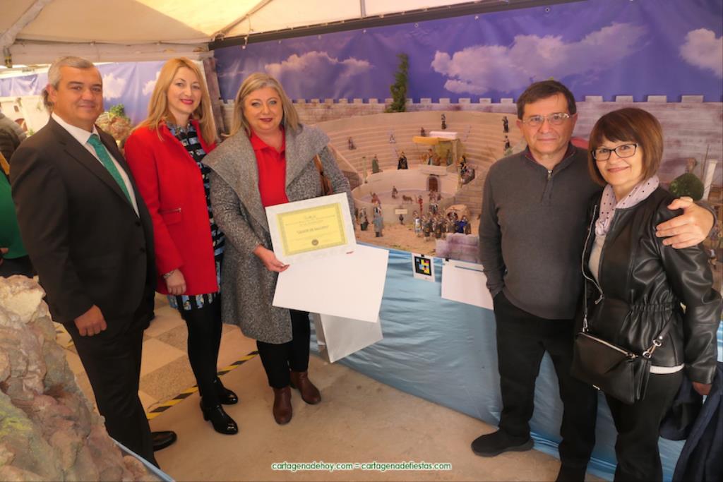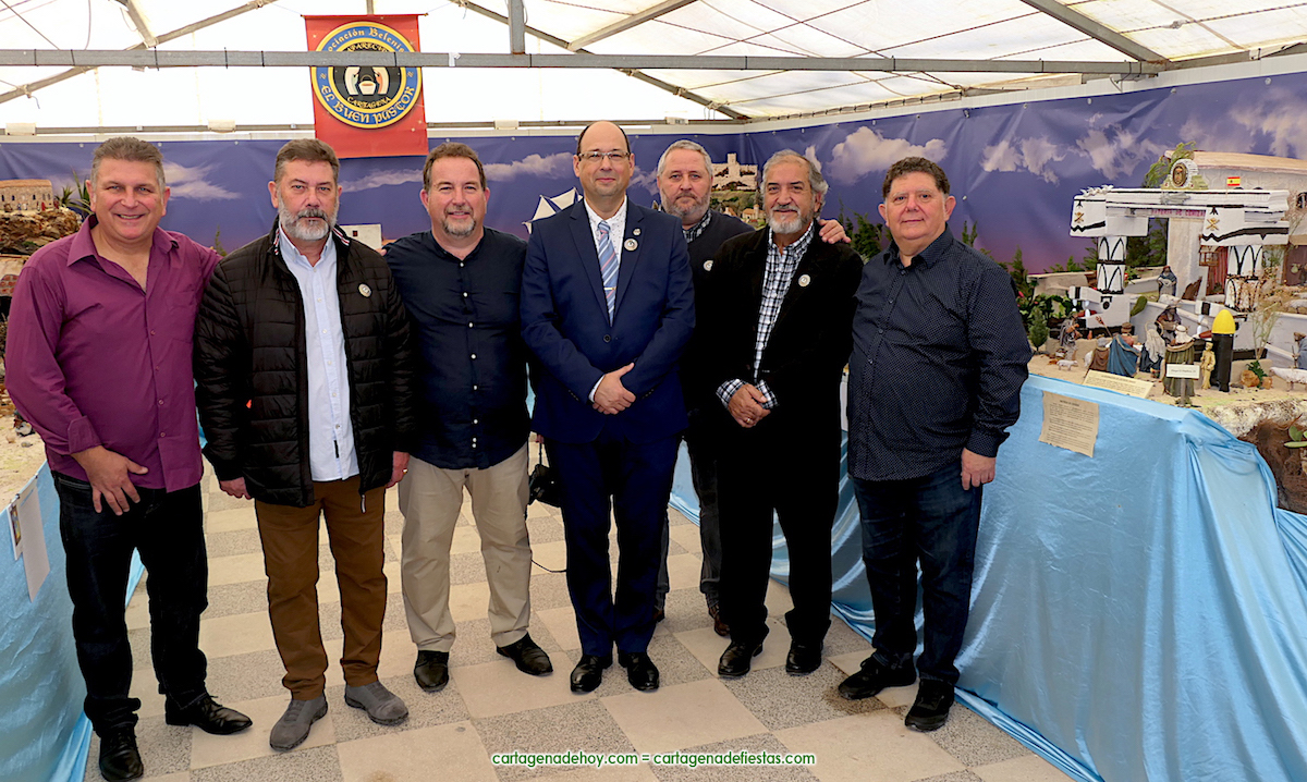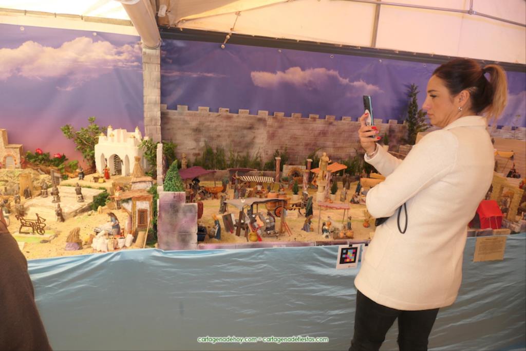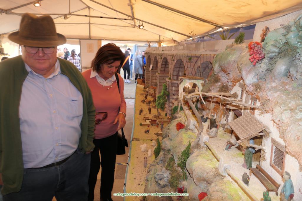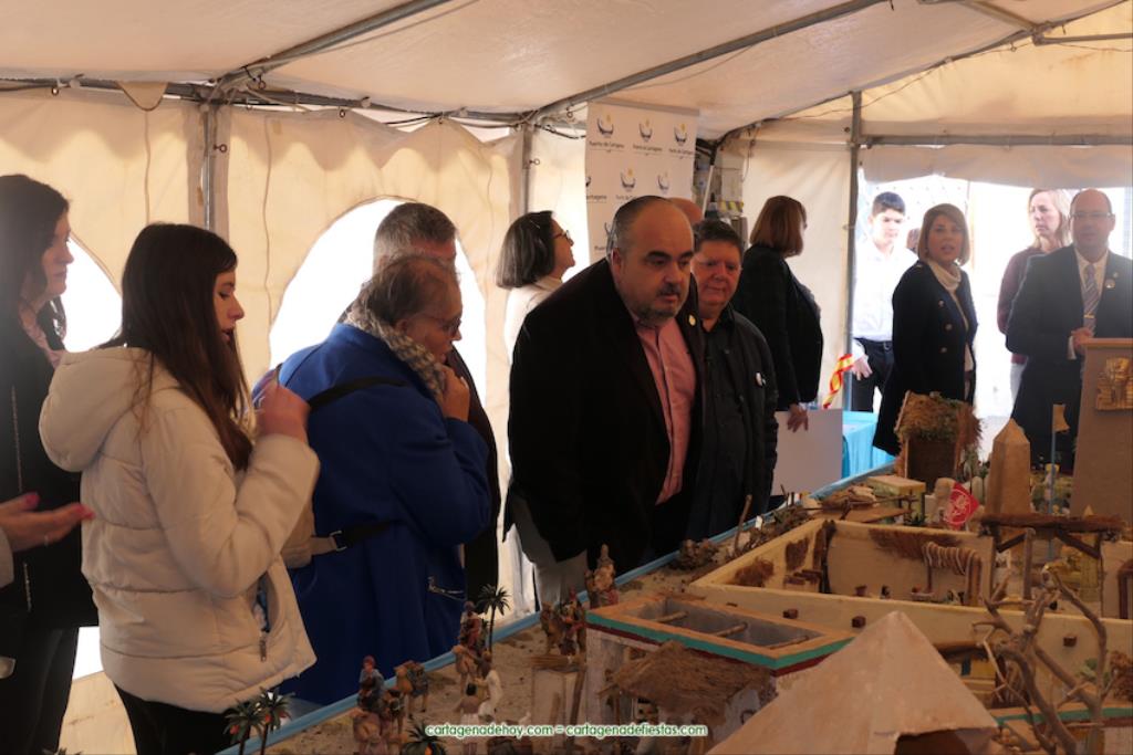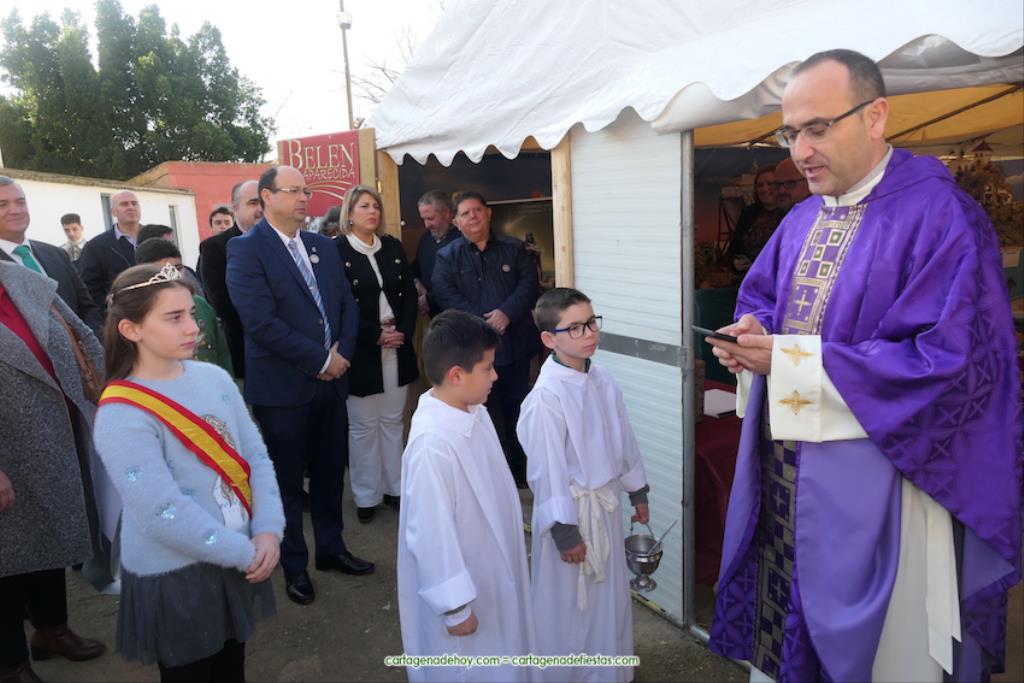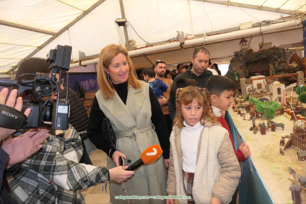 Tras el acto de entrega de distinciones en el interior de la iglesia (del que daremos cuenta en otro artículo), el Belén, ubicado bajo las carpas del patio parroquial, ha sido bendecido por el párroco e inaugurado por la alcaldesa, Noelia Arroyo, en un acto que ha contado también con la presencia de los concejales Juan Pedro Torralba y Enrique Pérez, además del presidente de la asociación de vecinos, Francisco José Martínez; de los presidentes de las juntas vecinales municipales de La Puebla-La Aparecida, Juan Manuel Ayaso, y de La Palma, Pedro Obradors; del presidente de la Federación de Tropas y Legiones, José Antonio Meca; del candidato del Partido Cartagenerista, Salvador Lara; del pintor Pedro Pérez Casanova, del presidente de la ONCE de Cartagena…