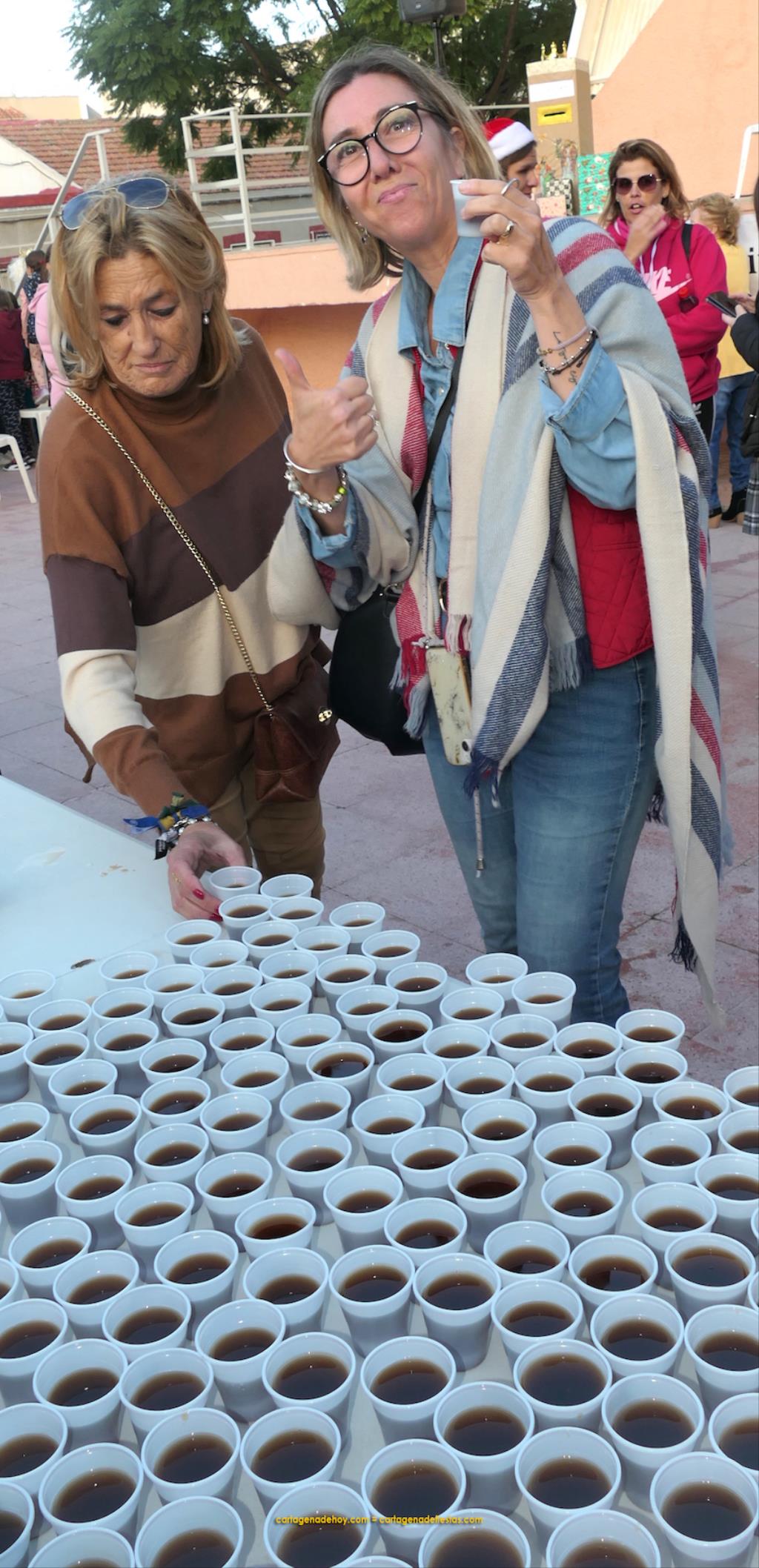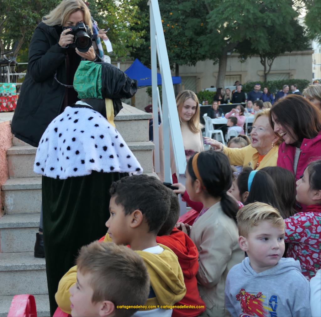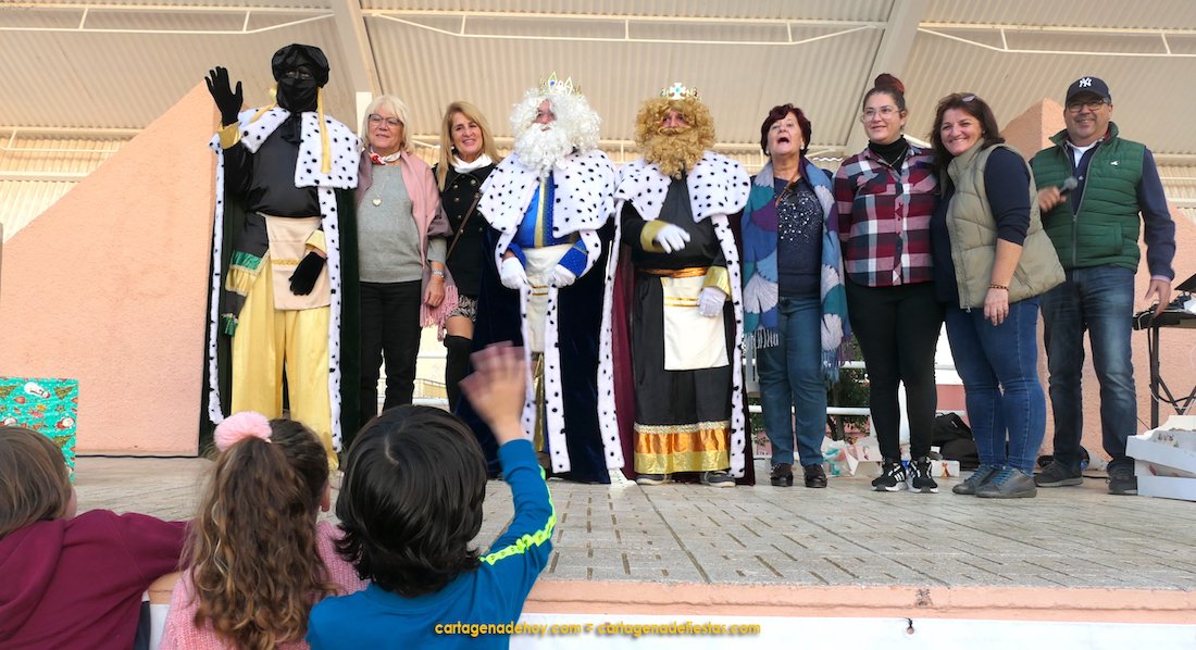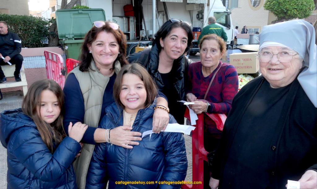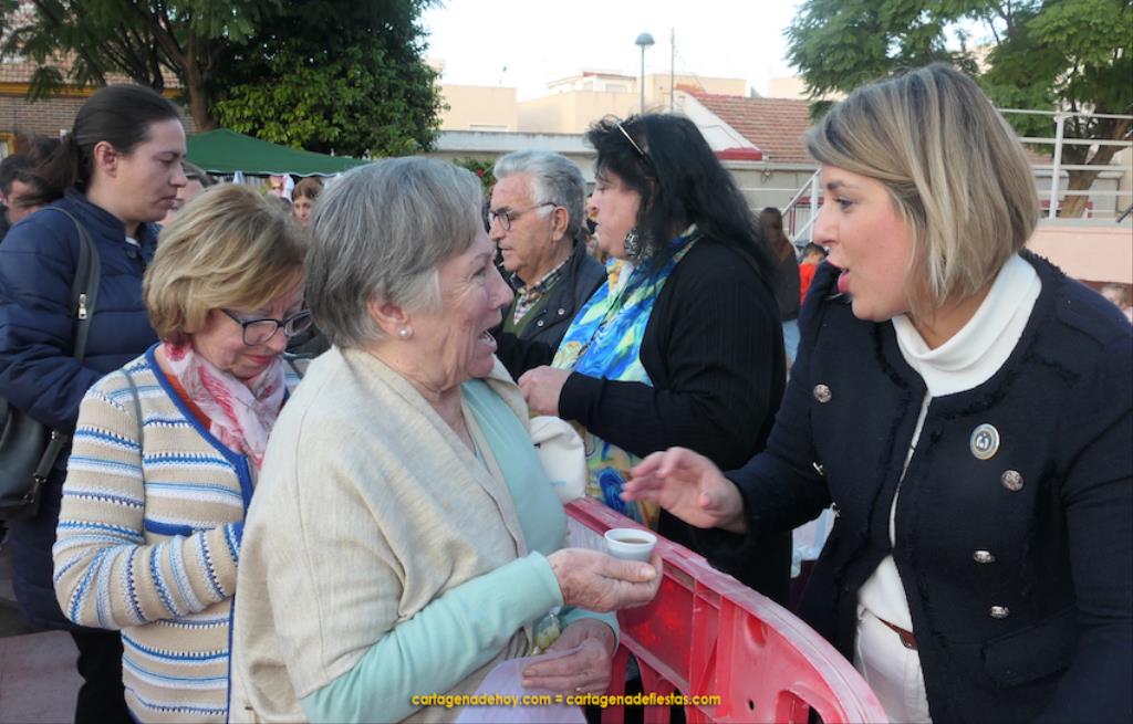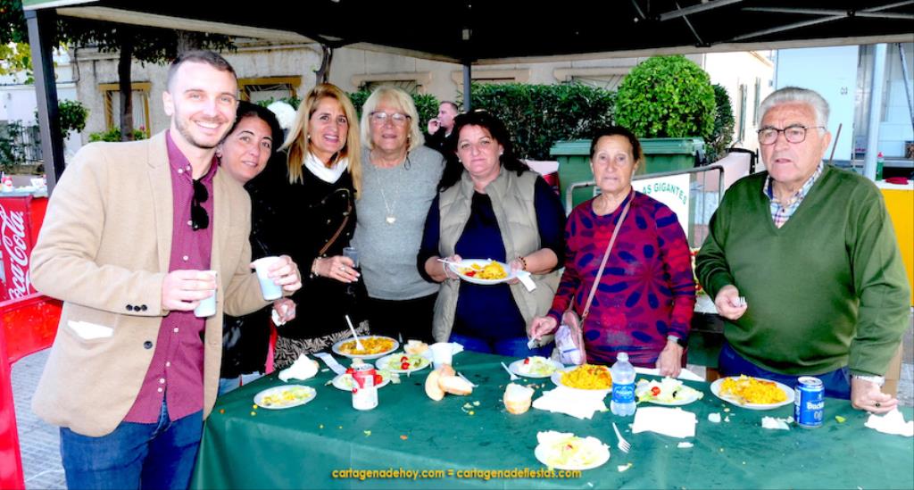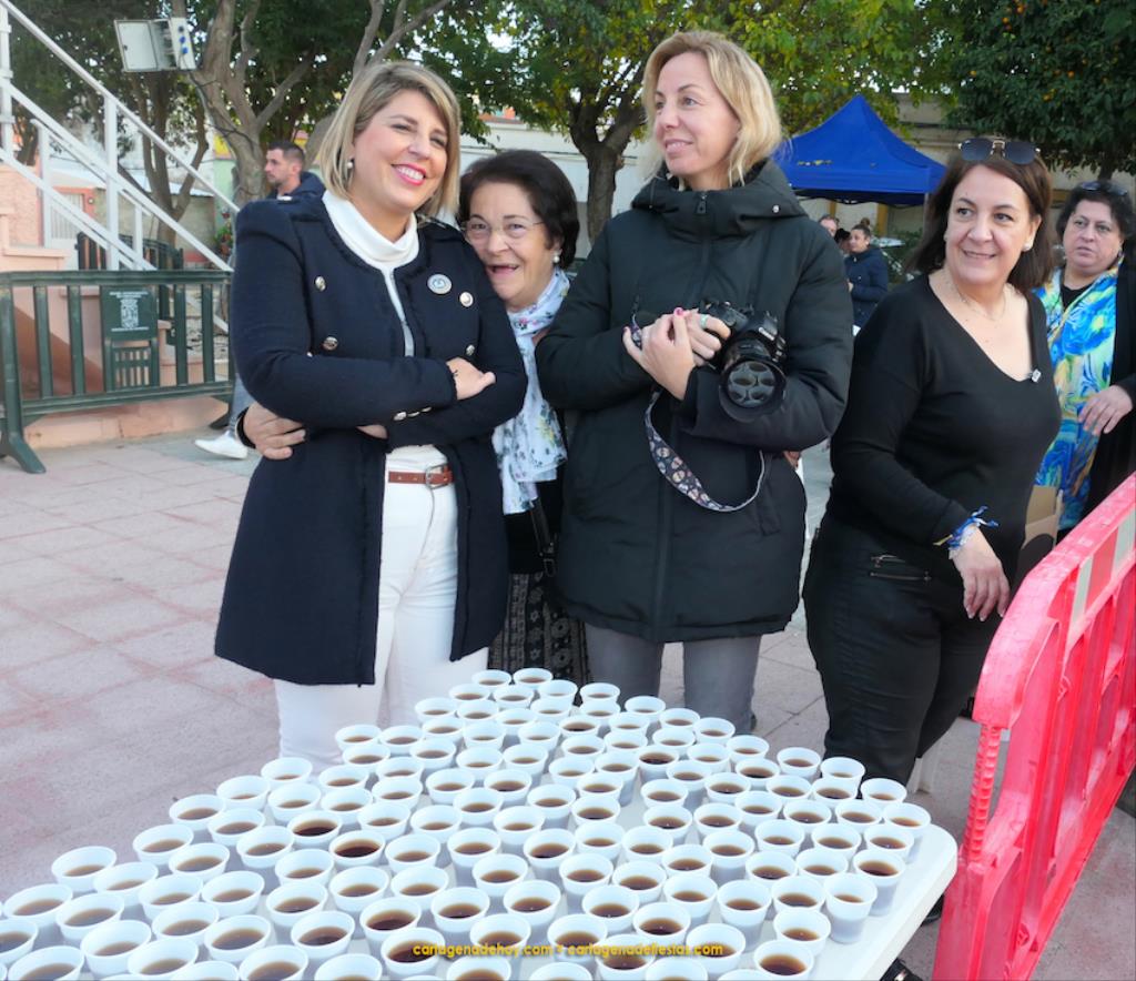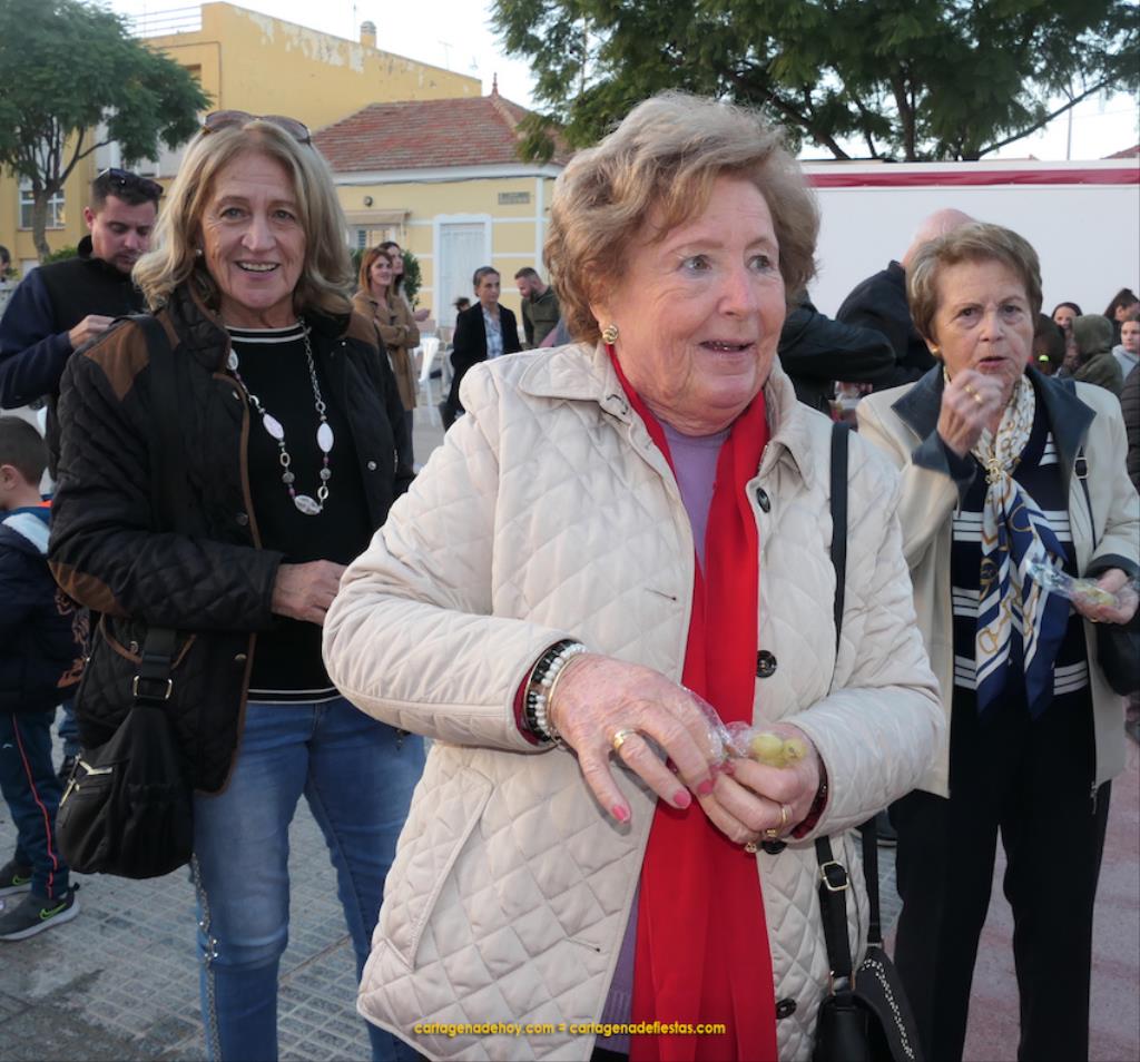 Estuvo la alcaldesa, Noelia Arroyo, durante varias horas, saboreando el arroz, distribuyendo el vino de pasas y tomando sus primeras 12 uvas de esta Navidad. Otros integrantes del equipo político del Ayuntamiento de Cartagena fueron los ediles Cristina Pérez (PP) y de Isabel García y José López (MC). La chiquillería disfrutó con los Reyes Magos y a los adultos se le veía alegría en sus rostros tomando uvas.