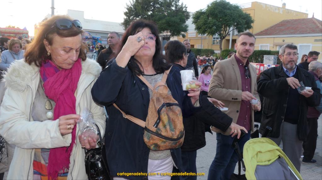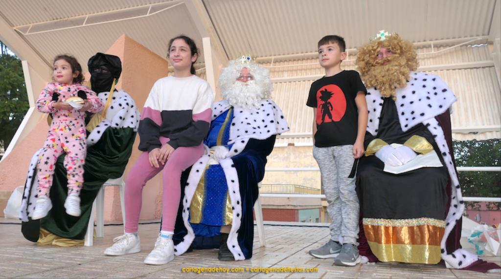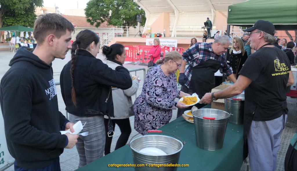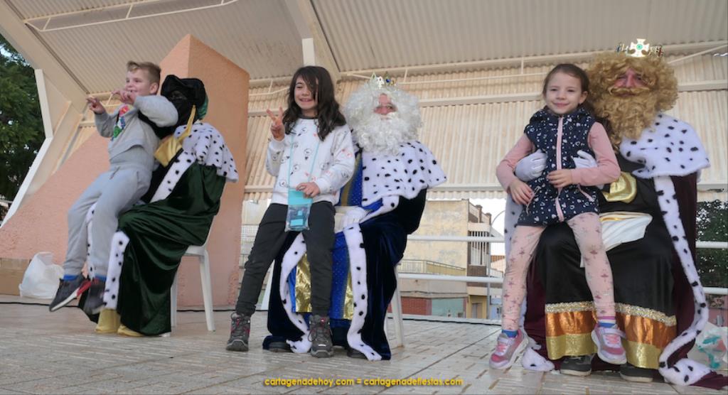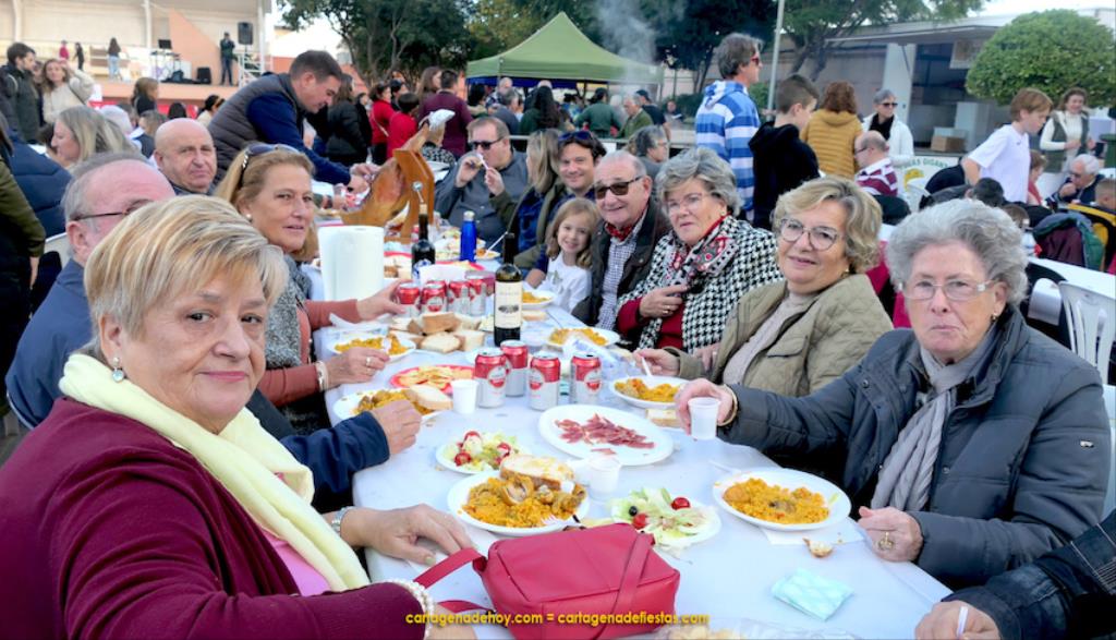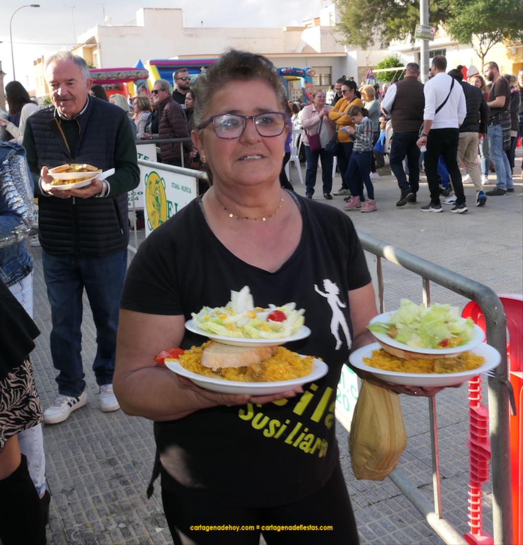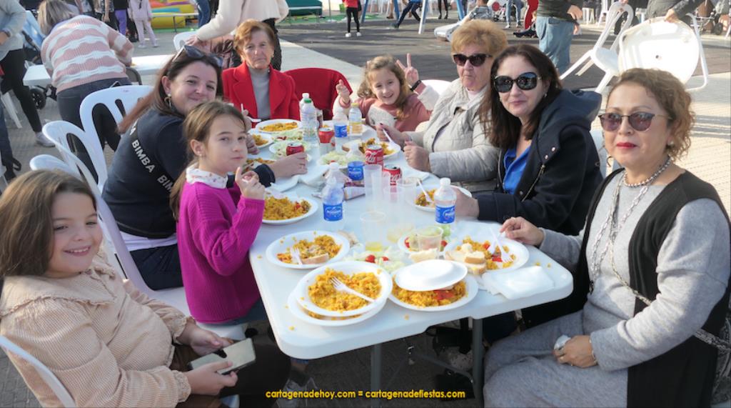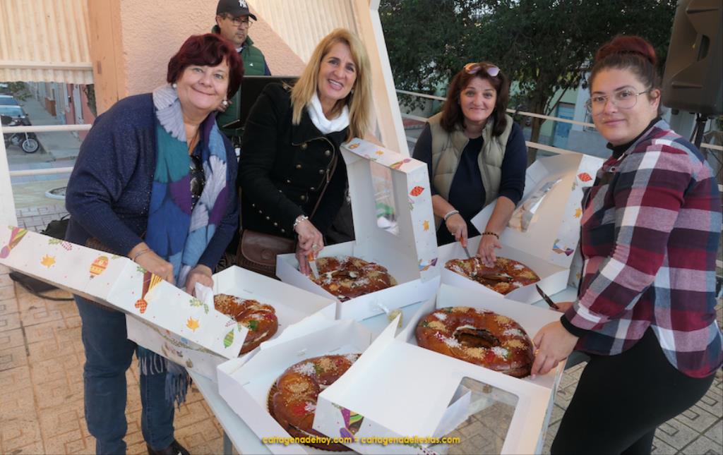 Estuvo la alcaldesa, Noelia Arroyo, durante varias horas, saboreando el arroz, distribuyendo el vino de pasas y tomando sus primeras 12 uvas de esta Navidad. Otros integrantes del equipo político del Ayuntamiento de Cartagena fueron los ediles Cristina Pérez (PP) y de Isabel García y José López (MC). La chiquillería disfrutó con los Reyes Magos y a los adultos se le veía alegría en sus rostros tomando uvas.
