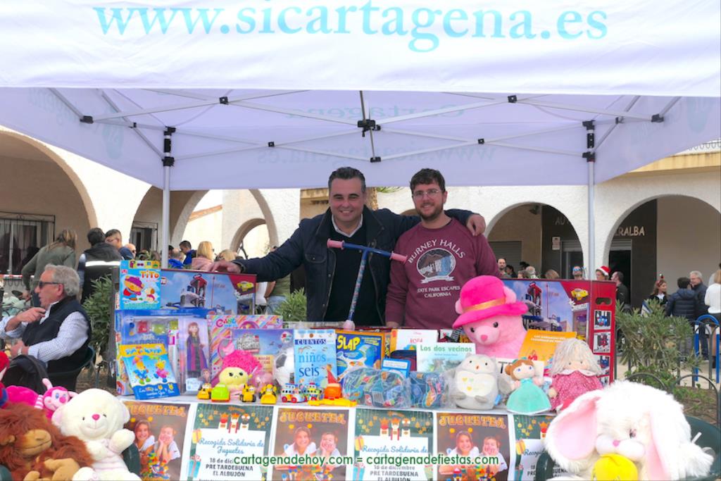 La fiesta mayor estuvo en la plaza Mayor. Así de simple y de claro, pues el céntrico enclave de El Albujón vivió un intenso domingo desde las diez de la mañana, cuando una chocolatada con bollos sirvió también para dar la bienvenida al mercadillo de artesanía y diferentes productos que se extendió por la plaza. Después, misa con villancicos, talleres infantiles organizados por el colectivo juvenil La Torre y las animadas coreografías de la comparsa Renacer que casi enlazaron con la música en directo de 'Kar-P-Diem'. Por la tarde, pantalla gigante para ver la final del Mundial de fútbol entre Argentina y Francia, además de una lotería familiar para ayudar a la labor de la asociación de madres y padres del colegio Luis Vives, siendo la otra iniciativa solidaria el puesto de recogida de juguetes habilitado por el partido 'Sí Cartagena', los cuales se sumarán a la campaña municipal 'Juguetea'.