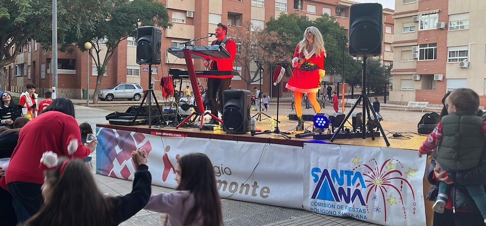 Cientos de personas disfrutaron de las propuestas de varios establecimientos de la barriada del Polígono Santa Ana junto a la comisión de fiestas, com migas navideñas, la visita de ‘El Grinch’ y música música de ‘djs’ y de grupos en directo.