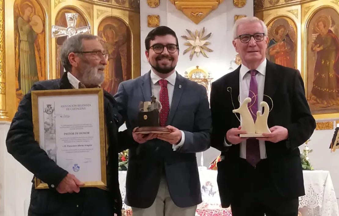 La distinción de la Asociación Belenista de Cartagena la recibió en el transcurso de la novedosa exaltación a la Navidad organizada por el colectivo que preside Antonio Ferrer y que tuvo como pregonero al diputado cartagenero Antonio Calderón Rodríguez en la parroquia de San Antonio María Claret, después de una ofrenda floral al monumento de San Francisco de Asís, patrón de los belenistas, ubicado en la plaza de Juan XXIII.