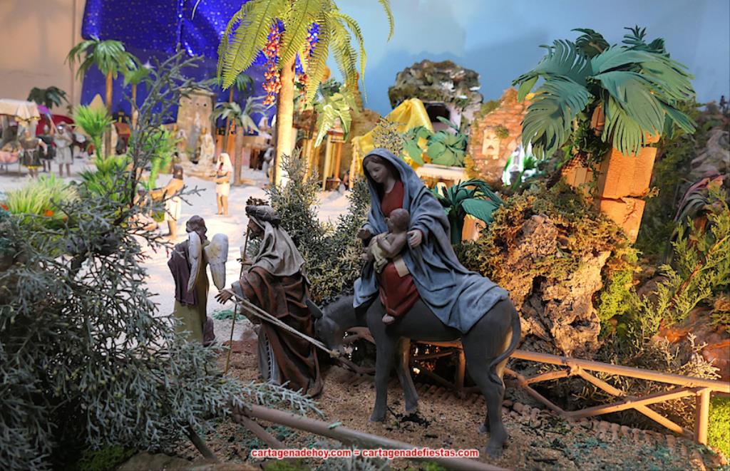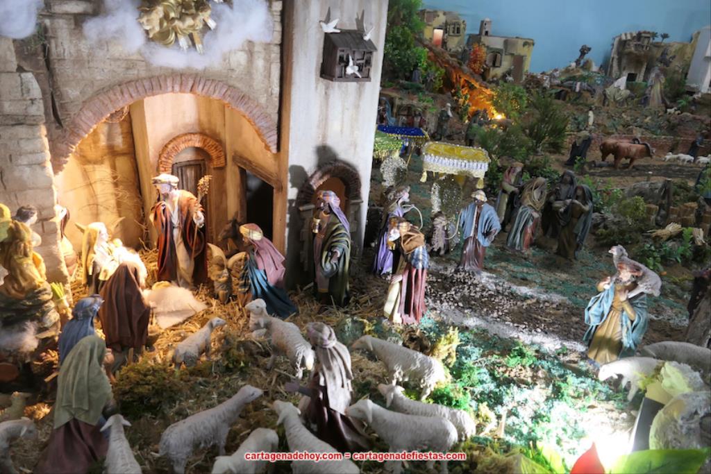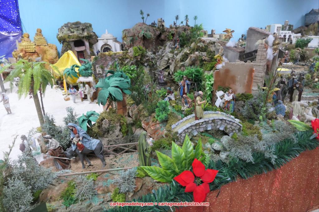 Cada año ofrece novedades por rediseño de escenarios o incorporación de nuevas escenas. Este año se han incorporado unas diez figuras y son las principales innovaciones la adoración de los Reyes Magos y el descanso de María y José en la zona de Egipto, explica José Lisón, a quien se observa entre el presidente de la asociación de vecinos, Juan Gómez Ayala, y la edil Cristina Mora en la tarde que se inauguró.