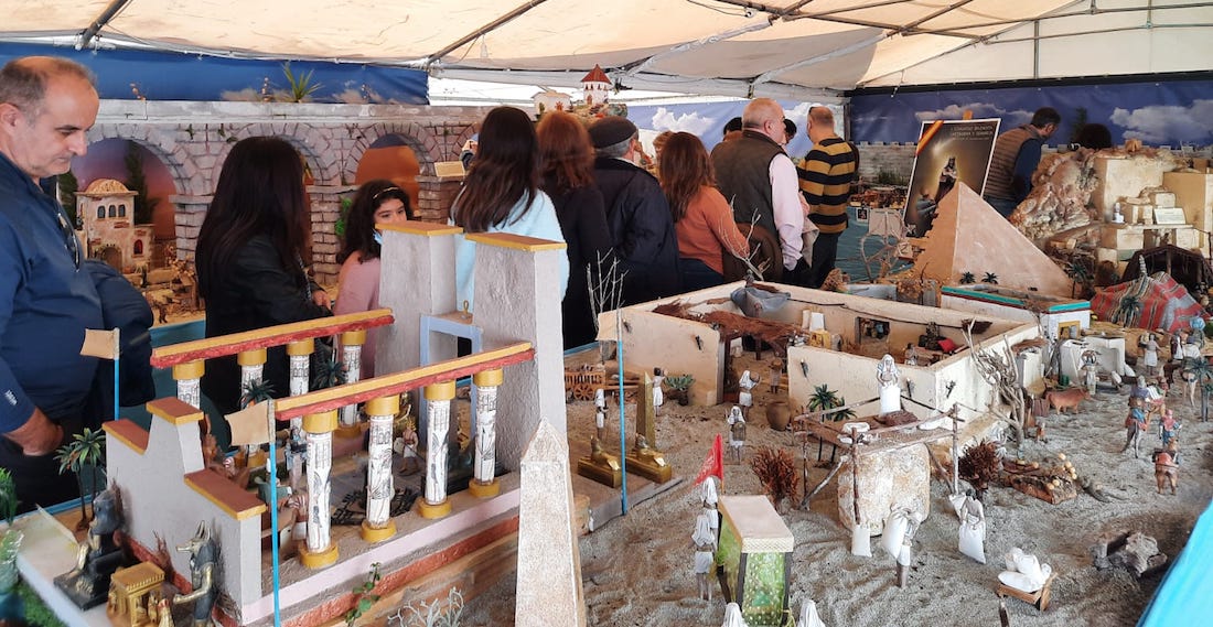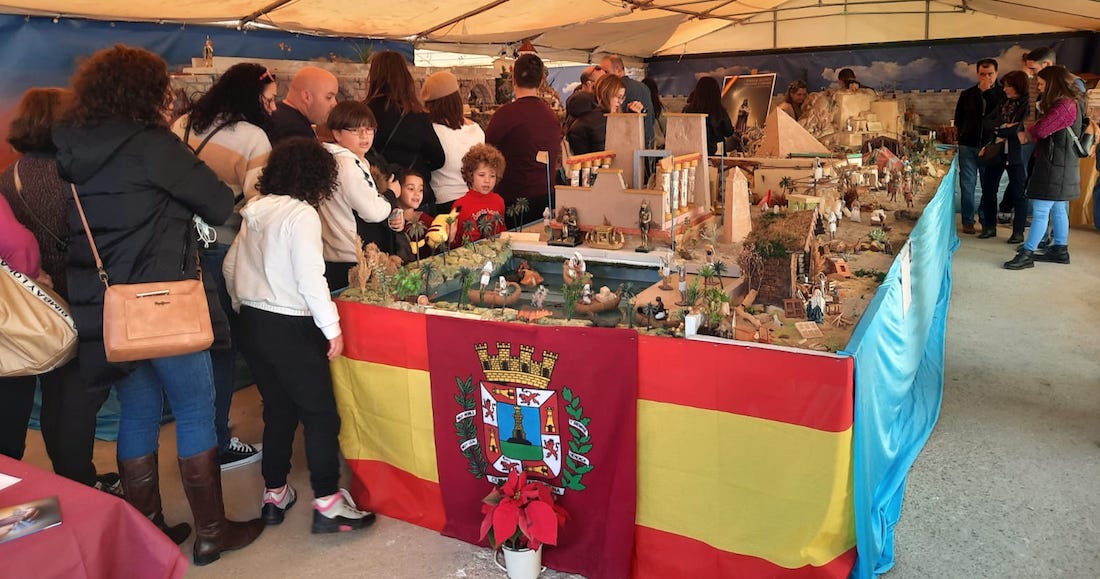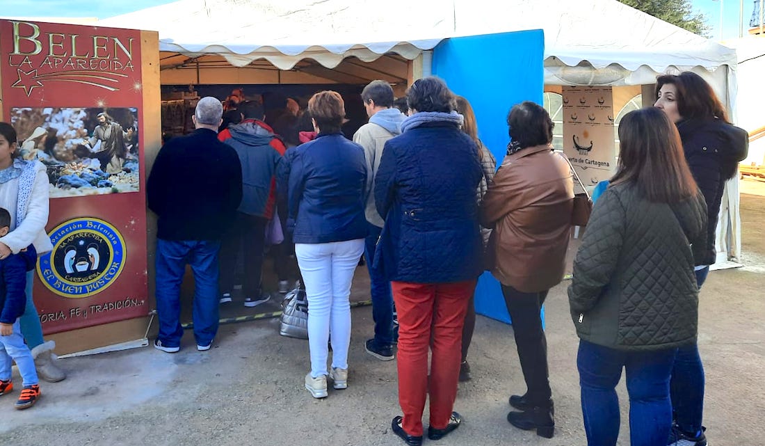 El monumental montaje de la Asociación Belenista 'El buen pastor' en el patio de la iglesia de Nuestra Señora de los Dolores recibió a los participantes en la ruta por los 'nacimientos' de Cartagena organizada por la concejalía de Festejos.