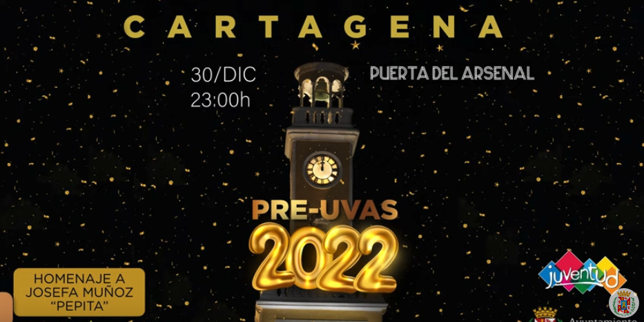 Preúvas de Cartagena. Plaza del Rey. A partir de las 23:00 horas. El Reloj del Arsenal volverán a marcar las doce campanadas en las preúvas del municipio tras el parón provocado por la crisis sanitaria. Los asistentes podrán disfrutar del cotillón, ya que se repartirán 2.000 bolsas. El evento impulsado por la concejalía de Juventud recordará a Josefa Muñoz, una de sus principales artífices, y contará con charanga y será retransmitido por la 7TV Región de Murcia. Más información.