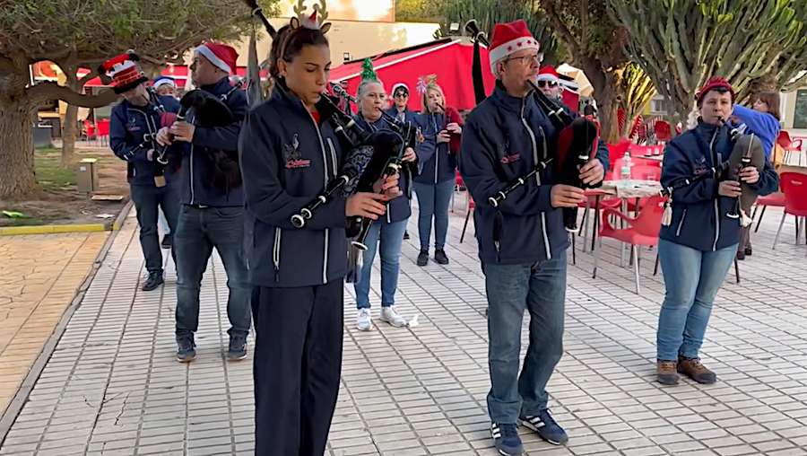 La comisión de fiestas de la barriada de Cartagena Norte informa sobre las actividades preparadas por varios establecimientos hosteleros, que incluyen música en directo, aperitivos, platos de arroz y la fiesta nocturna en el polideportivo. En la foto adjunta se observa a los gaiteros que han estado hoy recorriendo las calles.