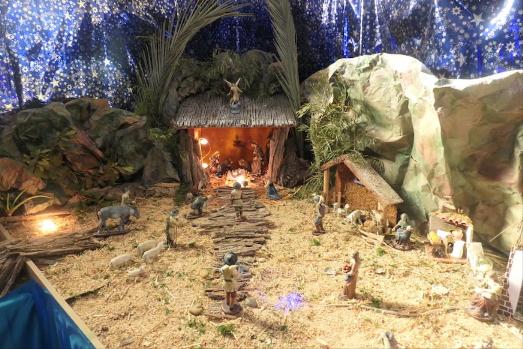 1º Parroquia de María Auxiliadora. El Belén, que cada año cambia su diseño, tiene siempre como epicentro el portal del nacimiento de Jesús. Se viene montando desde hace 15 años y dispone de un efecto de luces que refleja el tránsito diario, además de una fuente natural de piedra, un ángel en movimiento en una cueva y el uso de madera natural en edificaciones. En su elaboración interviene Ginés, Pruden y Julián.