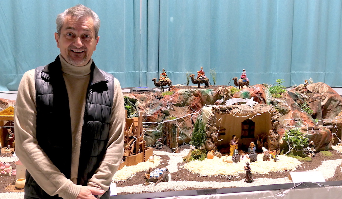 2º Jerónimo Blanco Sáez. Su montaje ocupa 10 metros de largo y 1,60 de ancho, siendo el primer Belén que se instala en los últimos tiempos en el local social de la Barriada de Hispanoamérica. Este dolorense tiene experiencia de montajes importantes en otras localidades, como Orihuela y Murcia, siendo la primera vez que lo hace en su tierra, siendo clave para esa decisión las figuras que le donó una mujer de la barriada de San Cristobal (pinchar aquí), a las que se han unido las que ha comprado y pintado. El Belén, que tiene letreros informativos, se basa en diogramas y recoge 9 misterios, estando en fase de completarse el próximo año. Muestra una gran creatividad en la creación de objetos con papel.