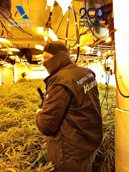 Los investigadores de Vigilancia Aduanera y de la Policía Nacional establecieron un dispositivo conjunto para acceder al local investigado y a su patio anexo y, una vez en el interior, pudieron comprobar la existencia de más de 300 plantas de marihuana en fase de maduración y procedieron a la identificación de la persona encargada de la plantación.