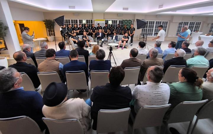 El presidente, cuerpo técnico y jugadores del equipo de baloncesto de Primera FEB de Cartagena estuvo en la tertulia del hotel Alfonso XIII se mostró optimista de cara a la fase de ascenso y, respecto al futuro siguiente, hizo un llamamiento tanto a la afición como al tejido empresarial y social.