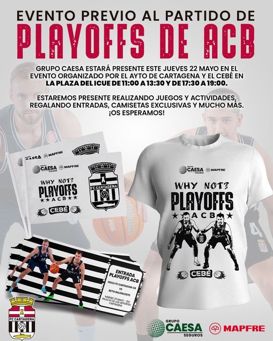 Los reyes de la gran fiesta de máscaras y plumas de Cartagena y de hermanos mayores de la Semana Santa lanzan un llamamiento para llenar el Palacio de Deportes en la eliminatoria Odilo-Betis de la fase de ascenso a la Liga ACB, sumándose en esa campaña asociaciones como la AD Algar Surmenor. Actividades y juegos, con regalos de entradas, esta tarde en la plaza del Icue para para animar el encuentro.