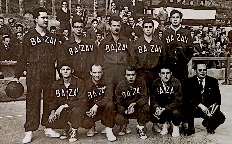El deporte de la canasta, que cada vez se acerca más a su centenario en 'La Trimilenaria', va a vivir ahora un gran capítulo con la clasificación del Odilo FC Cartagena CB para las eliminatorias de ascenso a la Liga ACB, lo que recuerda que en 1968 el equipo de la EN Bazán, que en 1959 había ascendido a primera división (foto adjunta) se quedó muy cerca de la entonces Liga de Honor tras una fase disputada en Los Juncos que se llevó Manresa Kan's y en la que derrotó a Valencia y Huesca.