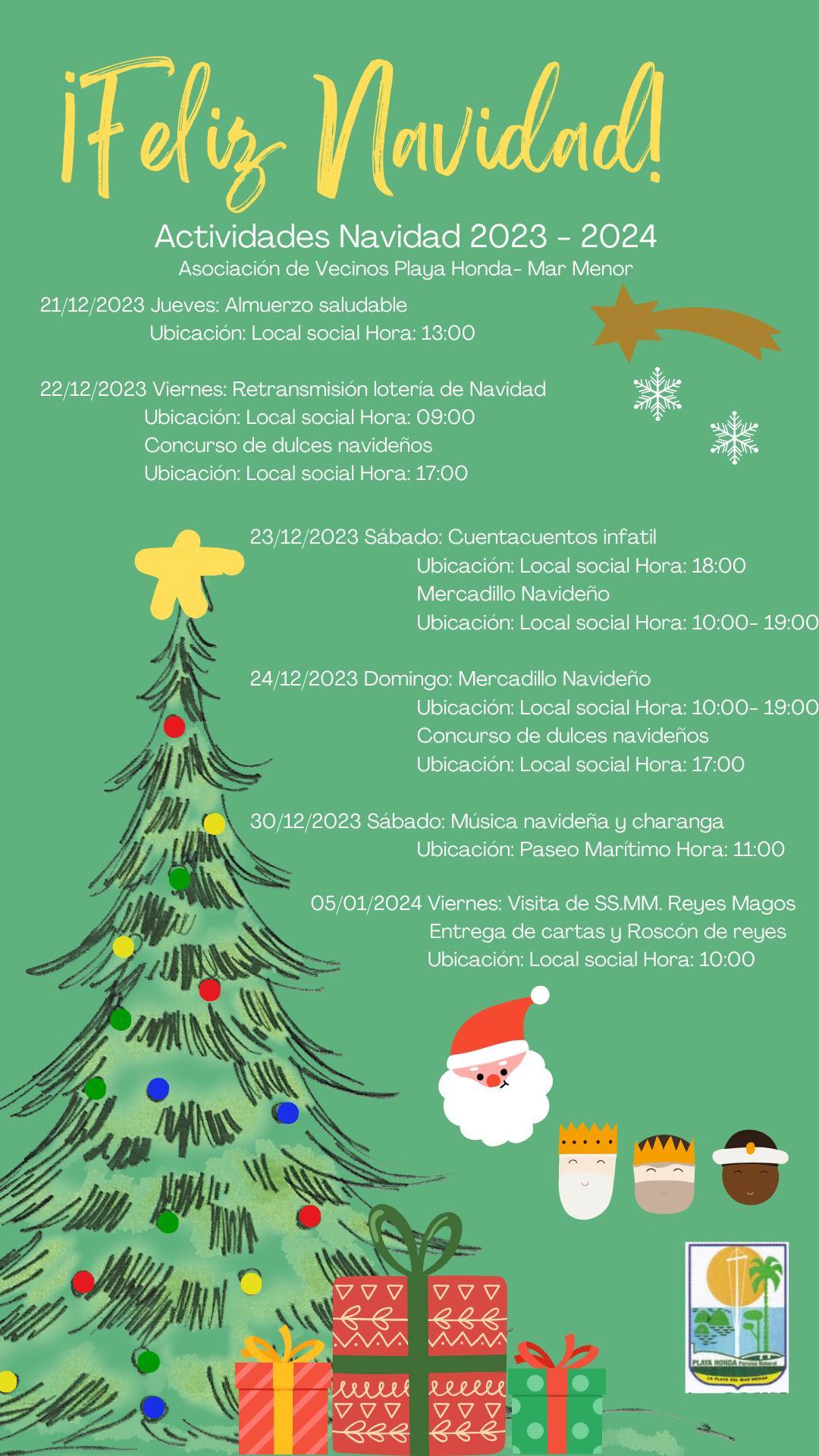 La asociación de vecinos ha preparado un programa entre el 21 de este mes y el 5 de enero, que incluye concurso de dulces, cuentacuentos, dos jornadas de mercadillo, charangas, visita de los Magos de iruebte, roscón de reyes, etc. El epicentro de las actividades es el local social.