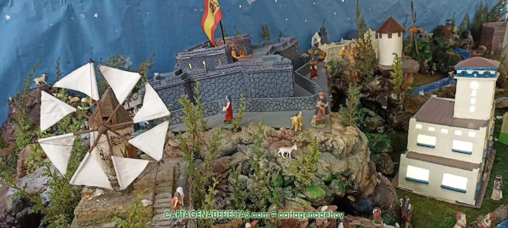 El caso es que Cartagena ha desplazado a Belén y que en Molinos Marfagones el lugar donde nació Jesucristo es la 'Trimilenaria', según se puede observar. De la población de Nazareth poco queda, siendo cartageneras el 99% de las edificaciones. No llegan al cien por cien porque José Vicente deja un hueco para hacerle un guiño a su tierra natal de Hellín con un molino manchego de cuatro aspas que ubica no muy alejado de otro cartagenero de ocho velas.
