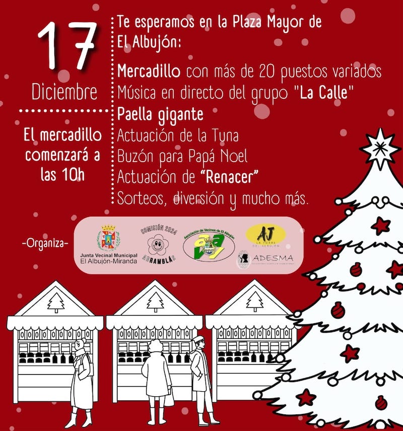 Será este domingo cuando se celebre en la Plaza Mayor del pueblo, con actividad que abrirán los mercaderes a las diez de la mañana para una jornada que tendrá a la tuna, al grupo coreográfico Renacer, la música de la banda 'La calle', un arroz gigante, sorteos, etc. Por otro lado, indicar que hasta el martes está abierto el plazo para apuntarse al concurso de decoración de jardines y fachadas navideñas.