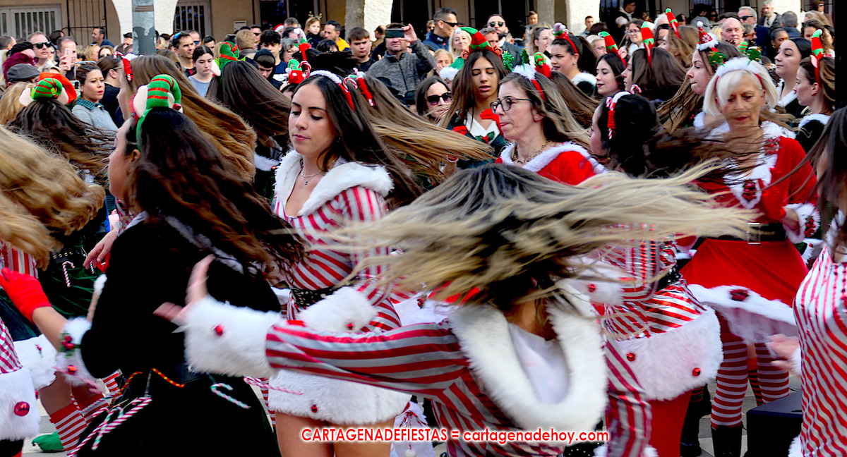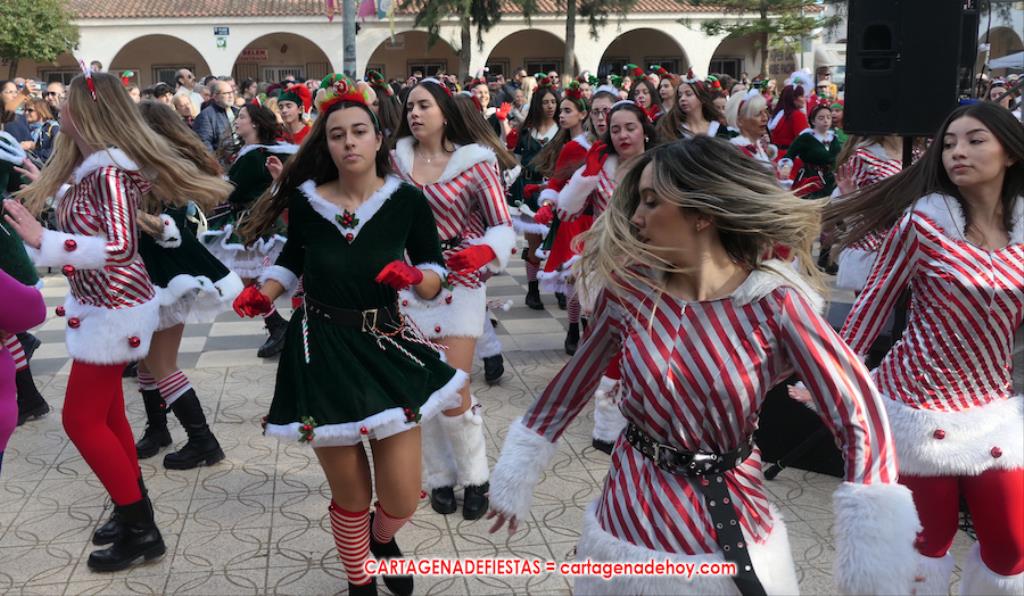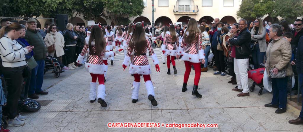 El grupo coreográfico Renacer puso un gran ritmo de música navideña a la ‘Pronochebuena albujonera’, que generó un magnífico ambiente en la plaza Mayor con mercadillo, variedad de actuaciones musicales, chocolate, arroz gigante, sorteos, fotomatón, etc.