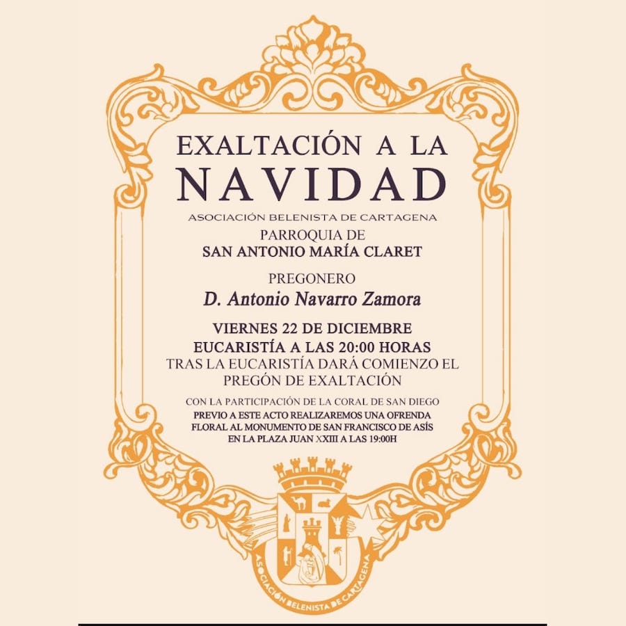 También reseñar que en la exaltación a la Navidad de hoy en la parroquia de la calle Jabonerías de Cartagena participará la coral de San Diego.