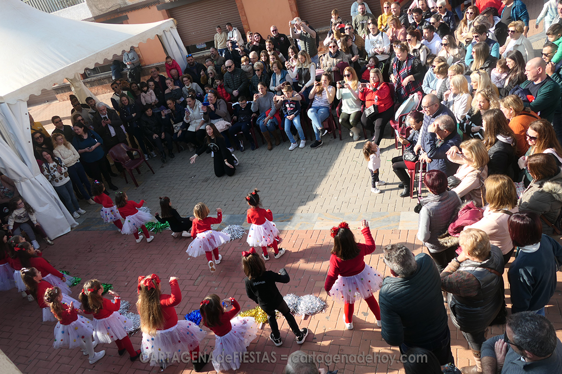 Más de una treintena de alumnas de la academia 'The Good Dance', que dirige Raquel Martínez Molina, protagonizaron, durante más de una hora, animados bailes en la plaza de la Iglesia, ante el magnífico mural del Mar Menor, dentro de la programación navideño del pueblo.
