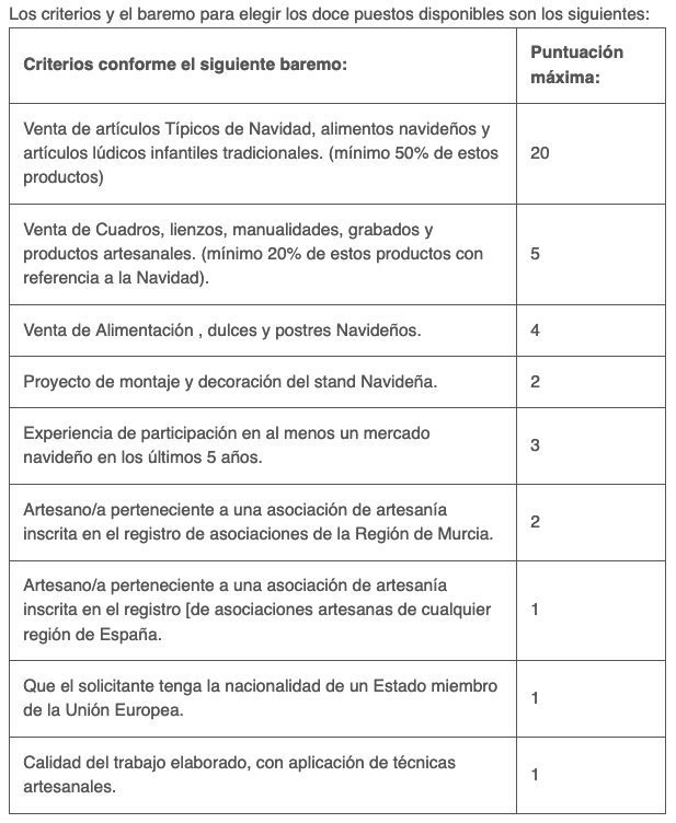 El Ayuntamiento de Cartagena ha aprobado las bases que, con carácter general, establecen qie el montaje comenzará a partir de las ocho horas de la mañana y se desmontarán a las ocho de la tarde de cada uno de los días autorizados. La Junta de Gobierno también valida las condiciones para instalar los puestos del mercadillo navideño de la Alameda de San Antón.