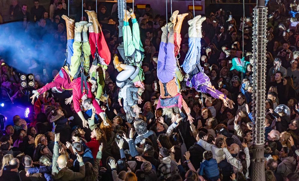 Luz y color que llegaron por aire, de la mano del espectáculo de Peter Pan, Wendy y Campanilla, surcando el cielo cartagenero para llegar hasta la plaza del Ayuntamiento, donde cientos de personas disfrutaron en familia de las acrobacias de estos personajes de cuento.
