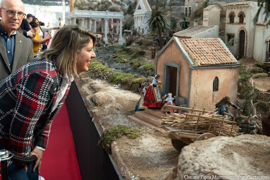 El Belén Municipal ya puede visitarse en su habitual ubicación en la plaza San Francisco, tras la tradicional inauguración ese viernes 6 de diciembre, a cargo de la alcaldesa de Cartagena, Noelia Arroyo, que ha estado acompañada de miembros del equipo de gobierno y de la corporación local.