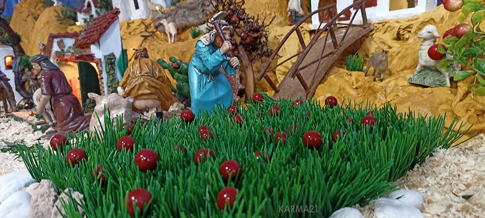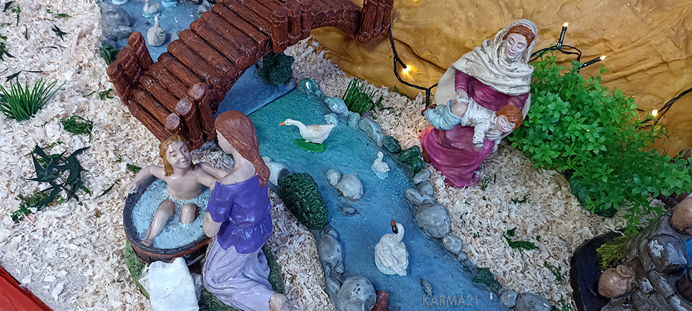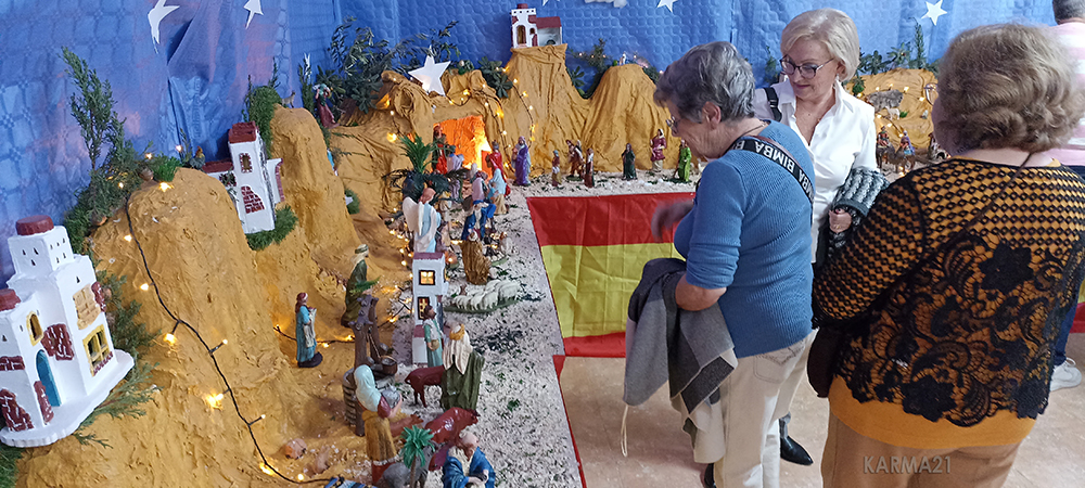 La asociación de vecinos ofrece este año un gran nacimiento que ha ganado unos cinco metros de longitud en su escenario y que ofrece escenas de madres cuidando de sus pequeños, como se observa en la imagen adjunta.