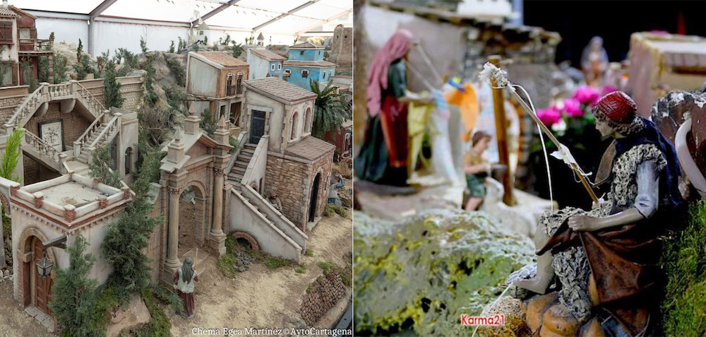El joven cartagenero Martín García Martínez ofrece reportajes en vídeo de los grandes nacimientos instalados en la glorieta de San Francisco de Cartagena, en la plaza de la Marina Española de Santa Lucía y en la Casa del Piñón de La Unión.