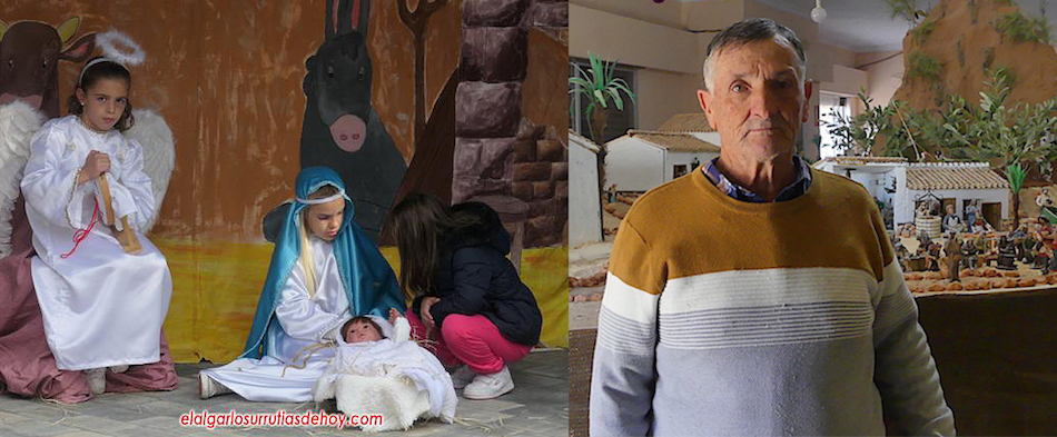 El pueblo algareño recuperó el sábado un Belén viviente que estuvo enriquecido por un mercadillo de artesanía que hacía juego con las escenas, mientras que el domingo inauguró el gran nacimiento que cada año monta Antonio Marín y que, posiblemente, sea el que más figuras en movimiento ofrece en la Región de Murcia.