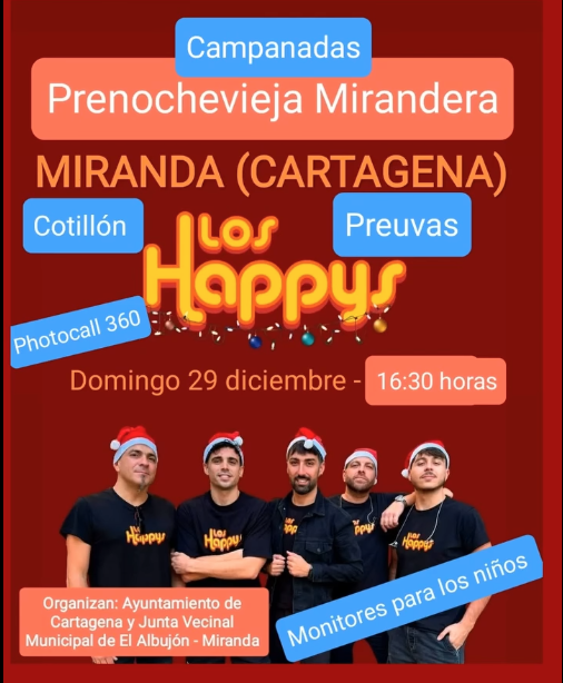 16:35 horas. Tardeo con la actuación del grupo 'Los Happys'. Organiza Ayuntamiento de Cartagena.