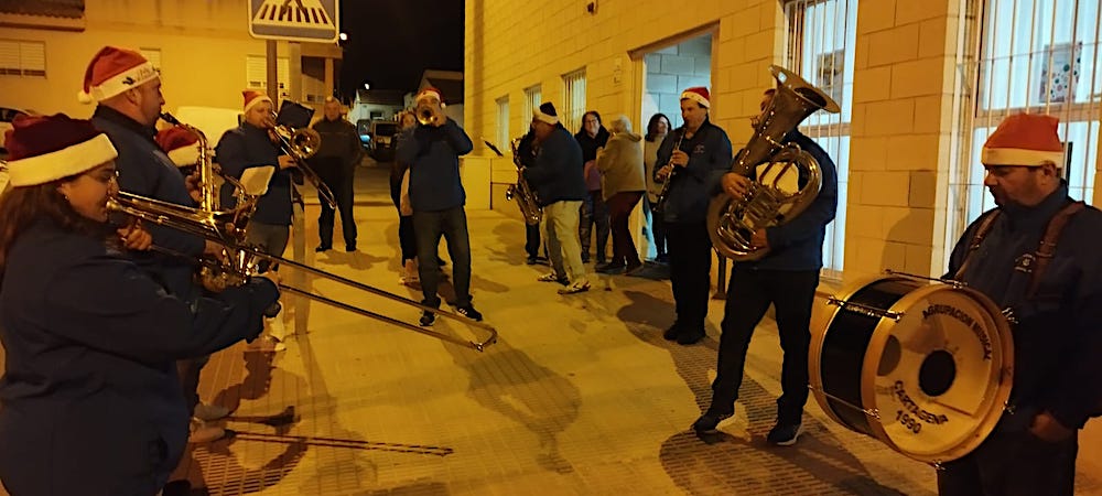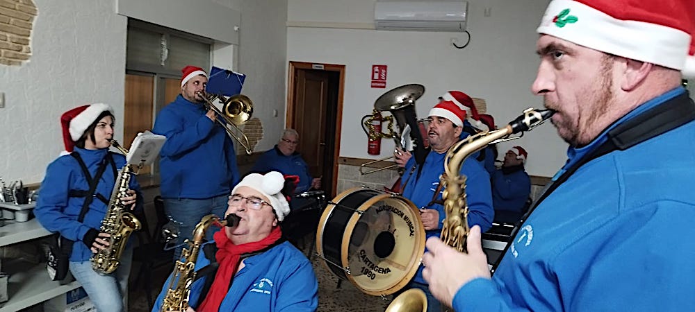 La Asociación Músico-Cultural Cartagena 1990 sigue recorriendo las poblaciones del municipio con su animada charanga navideña. El pasado fin de semana estuvieron en La Azohía, Cabo de Palos, El Beal, El Llano del Beal y El Estrecho de San Ginés.