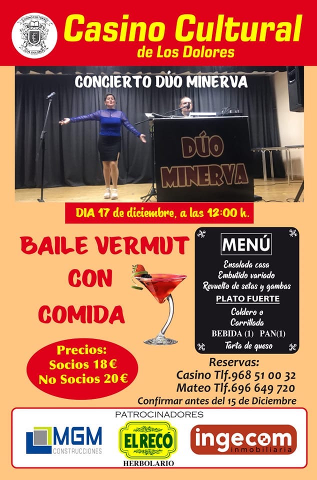 La directiva de la entidad ubicada en el más que centenario edificio de Los Dolores ha preparado un baile del vermú con comida y música en directo para bailar con Dúo Minerva.