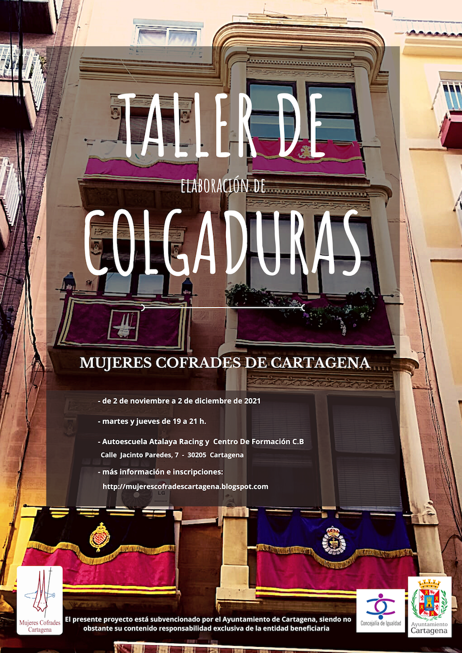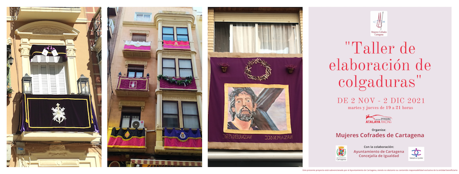 Con este Taller de Elaboración de Colgaduras queremos transmitir la experiencia recopilada por nuestra Asociación a través de las cinco ediciones convocadas del "Concurso de Embellecimiento de Balcones y Fachadas Semana Santa de Cartagena", así como formar a quienes en él participen en el diseño, proceso de elaboración, e instalación de colgaduras, y en la decoración de fachadas.Este taller pretende motivar a sus participantes a realizar elaboraciones propias para decorar balcones, ventanas o terrazas con motivo de la celebración de la Semana Santa, o en otros eventos de especial relevancia de la ciudad de Cartagena.
