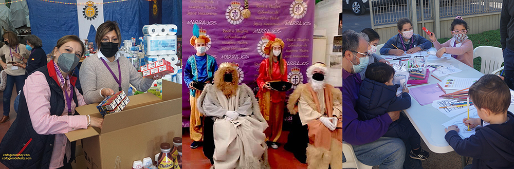 La familia de la Cofradía de Jesús Nazareno llevó a cabo en su almacén de la calle Mahón la tradicional jornada, que volvió a saldarse con éxito por el volumen de productos recogidos (seis toneladas) que tienen como destino diversas Cáritas de Cartagena, el proyecto juvenil del Coto Dorda y la casa ‘Soledad de los pobres’ de la Fundación Marraja. La jornada se enriqueció con actividades infantiles y la presencia de los Magos de Oriente para recoger las cartas de los chavales, además de chocolate caliente.