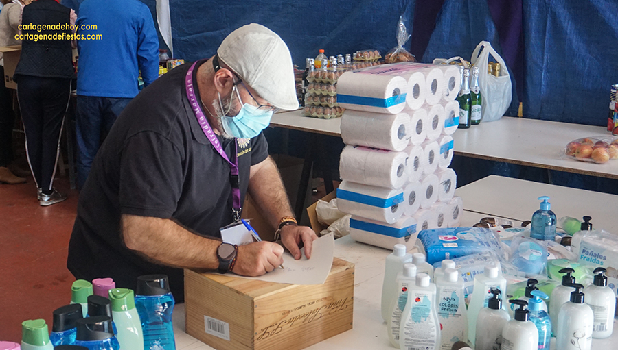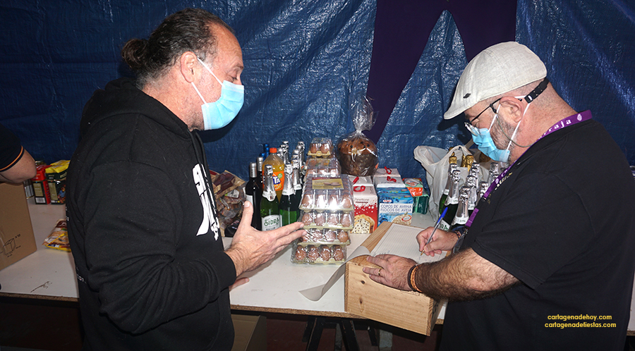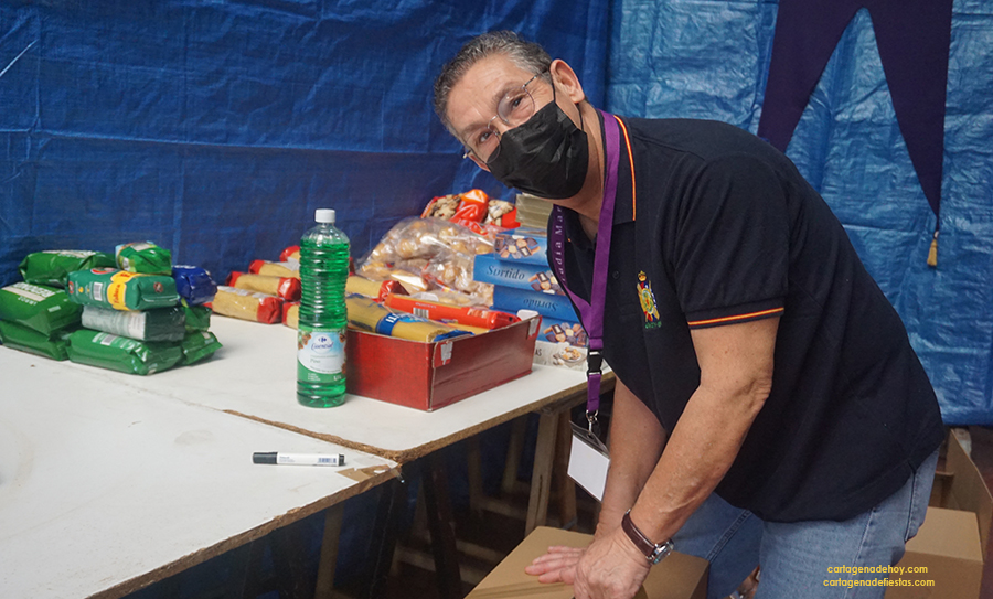 Esta actividad, que organiza la Comisión de Caridad de la Cofradía Marraja, comenzó a realizarse en 1988, y cada año son centenares los marrajos que acuden al Palacio de Nicodemo (el almacén de tronos de la Cofradía) para contribuir a paliar las necesidades de muchas familias en Cartagena.