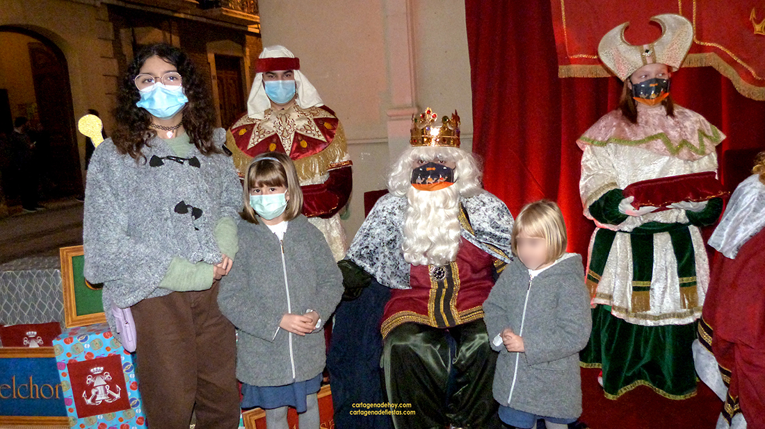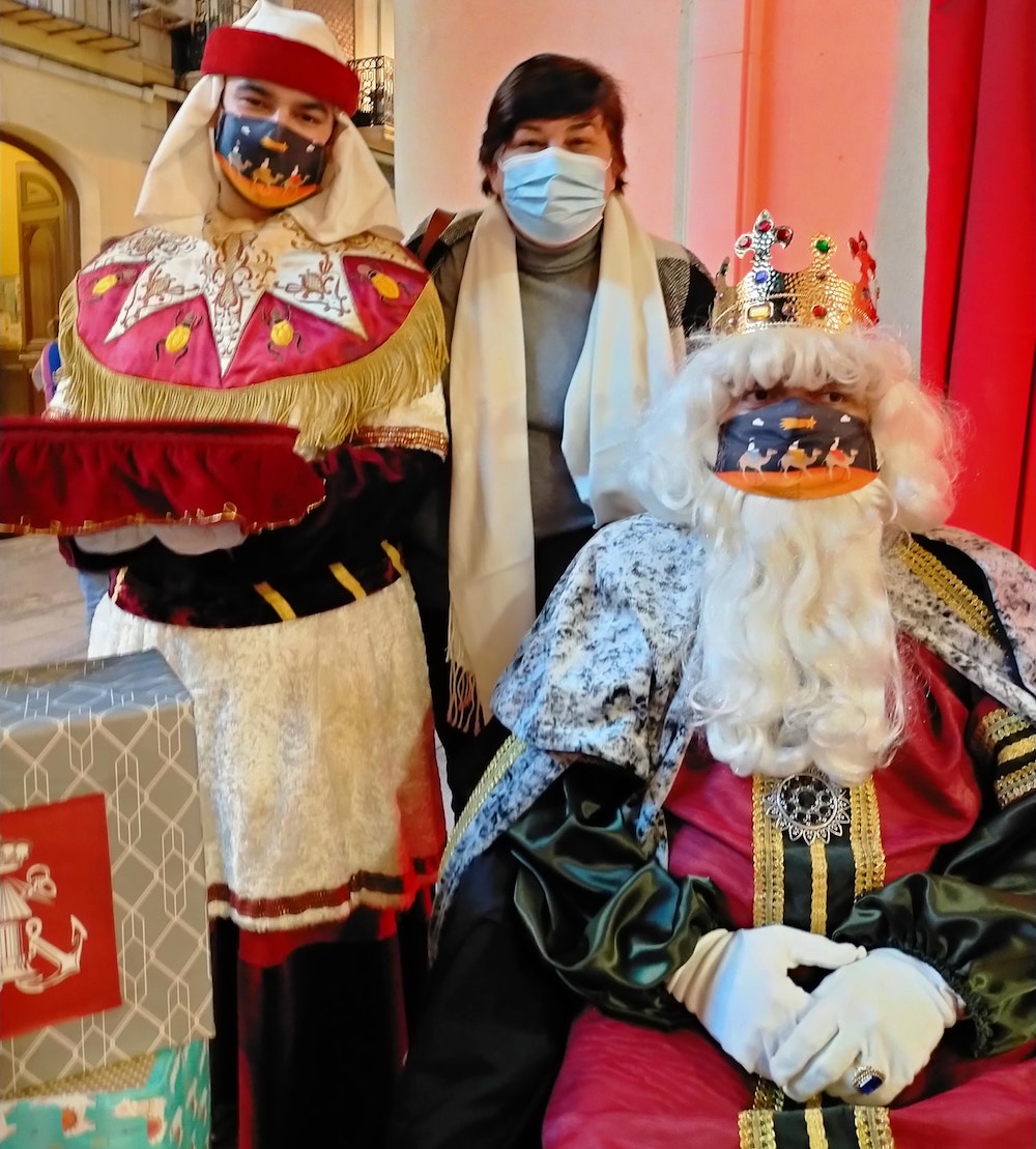 Los Reyes Magos y sus pajes, que llegaron con más de media hora de retraso (no se saben si por problemas con la ‘estrella GPS’ o con el certificado covid), estuvo formado por Santiago Ferrer, José María Soler y Miguel García como Melchor, Gaspar y Baltasar, con Raúl Miralles, Sergio Ferrer y Lara Rosell, como pajes.
