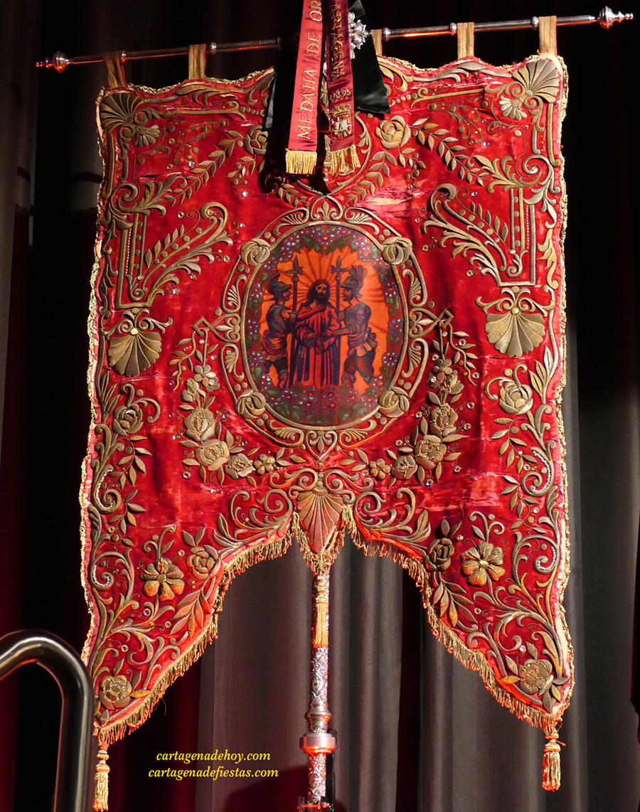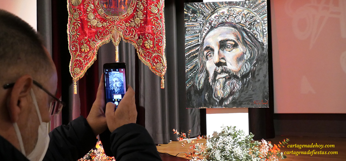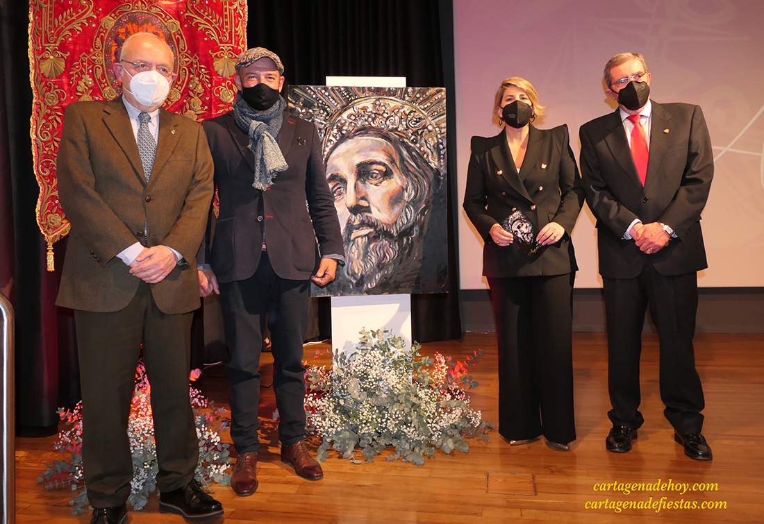 Después se ha presentado el cartel oficial, obra del sevillano Rafael Areal Delgado, integrante de un saga de pintores, quien ha expresado ante los asistentes que ha querido “darlo todo” con esta nueva obra, en la que ha recogido el rostro del Cristo del Prendimiento “con un toque moderno”. A continuación, Noemí Toral, mediante un vídeo, ha explicado el logo que ha diseñado. Esta procesionista andaluza, quien inició su contacto con Cartagena cuando vino a trabajar como restauradora en el Teatro Romano, ha explicado que ha querido remontarse “a la época dorada de la cartelería, que fue entre los años treinta y sesenta del siglo XX”. Su trabajo muestra a un sayón que sostiene una linterna “cuya luz el tiempo no ha logrado extinguir y que alumbra hacia el futuro”.