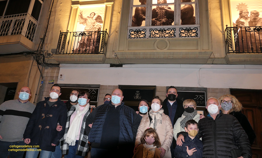 La Cofradía California abrió los actos de su 275 aniversario con el encendido de la fachada de su nueva sede en el edificio de ‘La espiga de oro’, donde lucirán, hasta junio de 2023, fotografías a gran tamaño de las ocho primeras tallas que tuvo la hermandad.