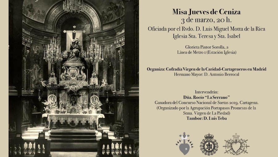 La voz de Rocío ‘La Serrano’, ganadora en 2019 del concurso nacional que organiza la agrupación marraja de Portapasos de La Piedad, y el tambor de Luis Teba estarán presentes en el acto religioso que organiza la Cofradía de la Virgen de la Caridad-Cartageneros en Madrid, cuyo hermano mayor es Antonio Berrocal, en la iglesia de Santa Teresa y Santa Isabel, cuya misa será oficiada por el reverendo Luis Miguel Motta de la Rica.